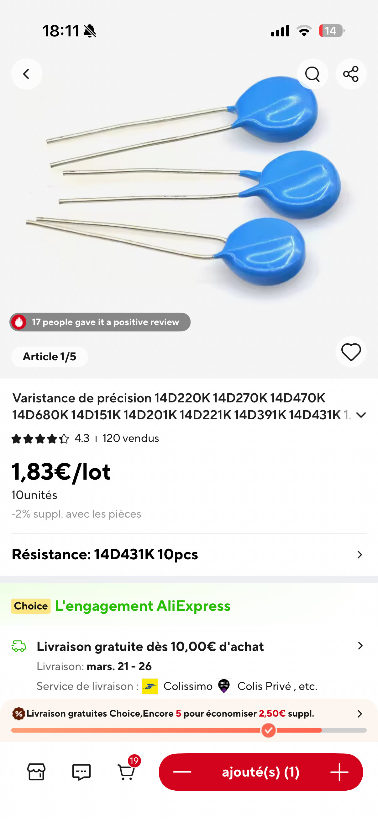 Tu fais fausse route… Ton compo qui amorcé c’est un éclateur, les composants neufs en forme de condo disque sont des varistors ou varistances, ou VDR, qui réagissent à une surtension appliquée à ses bornes en se mettant en court-circuit (réversible ou définitivement, dans ce cas le composant sera à remplacer)…