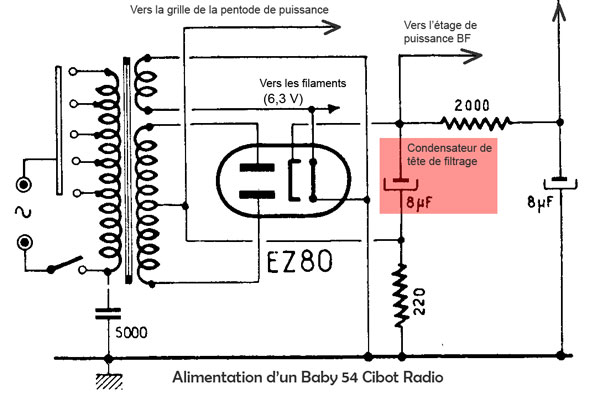 il est utilisé dans le poste comme point de découplage de la polarisation de la grille de l’EL84 .