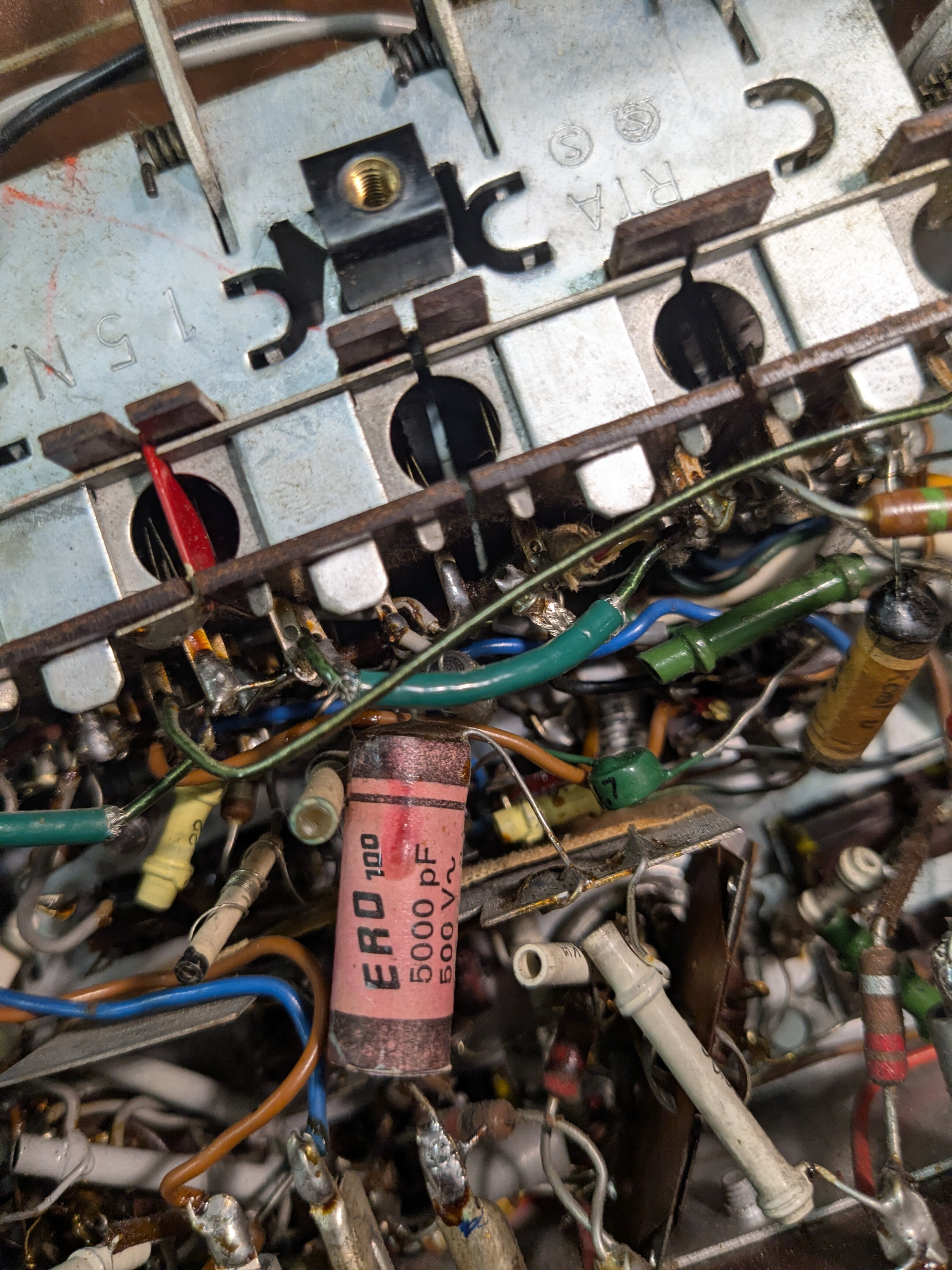 A priori, les condensateurs semblent en bon état. Vu l’âge de l’électrophone (LVDSM C290), faudrait-il changer certains ? Lesquels ? Je ne suis pas très connaisseur en cette matière.