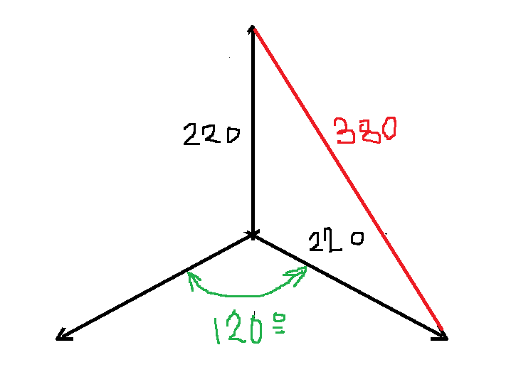 Si la tension phase neutre est de 127V la tension entre deux phases sera de 220 V