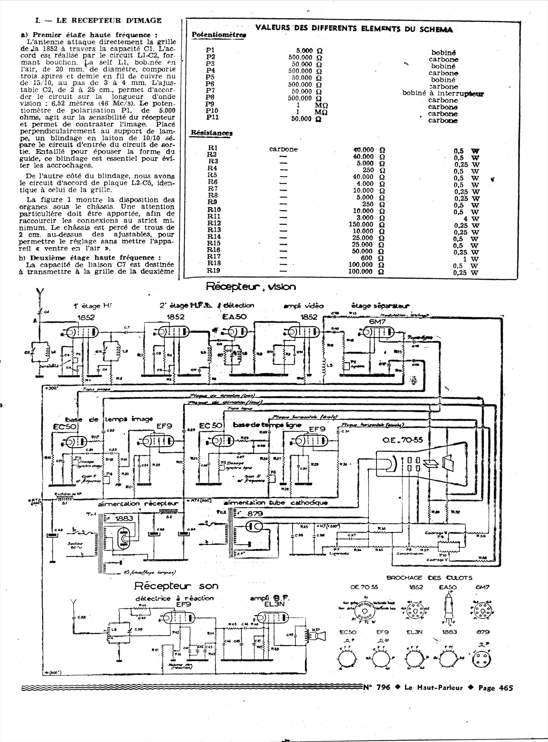 Pour répondre à vos questions, Nicolas Blazianu, que je remercie, m’a fourni le tube OE70-55, et en attendant que les émissions en 441 lignes soient relancées je vais me contenter de ne câbler que les étages basse fréquence !