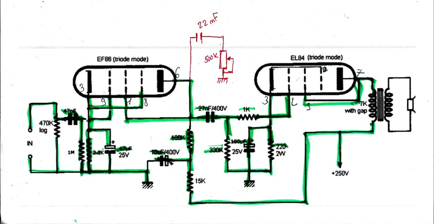 La 1 MΩ et le 47nf dans la grille de la triode sont inutiles.