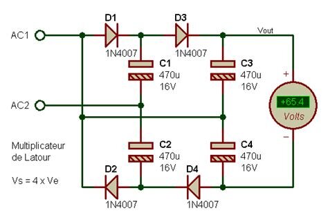 Le multiplicateur de Latour en configuration quadrupleur semble le meilleur choix du point de vue des performances et d’économie en composants. Seulement 4 diodes et 4 condensateurs. Ce sera donc Latour en ce qui me concerne ![]()