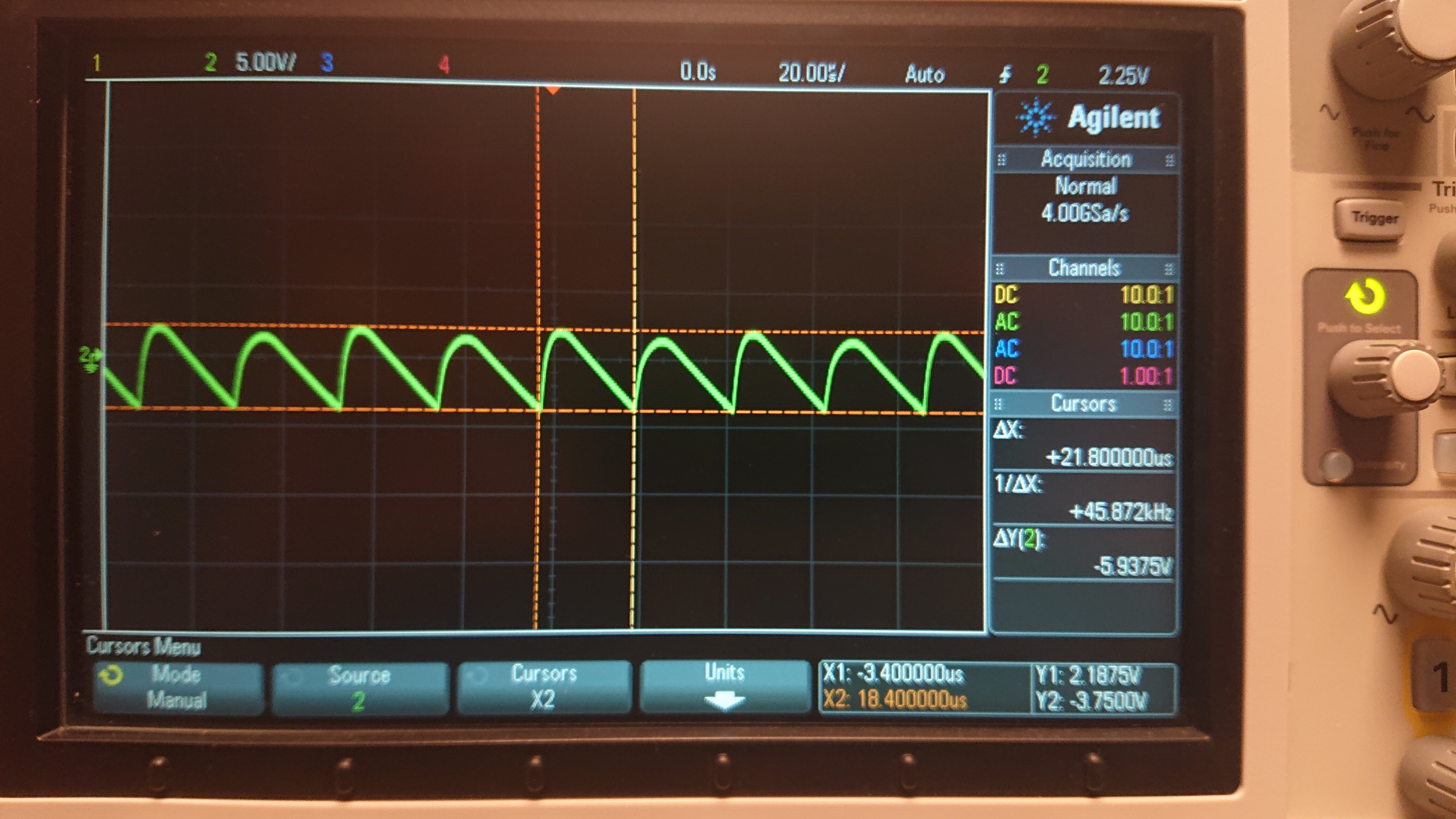 et je suis en train de faire quelques mesures à l’oscilloscope afin de valider cette deuxième approche et la comparer avec la première à base de transformateur.