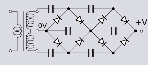 Pour cela j’ai dû étudier un peu plus en détail les différentes topologies des multiplicateurs de tension, [1]. Étant donné que dans le cas présent le coté avant redressement ne puisse pas être à la terre, j’ai convergé vers deux alternatives :