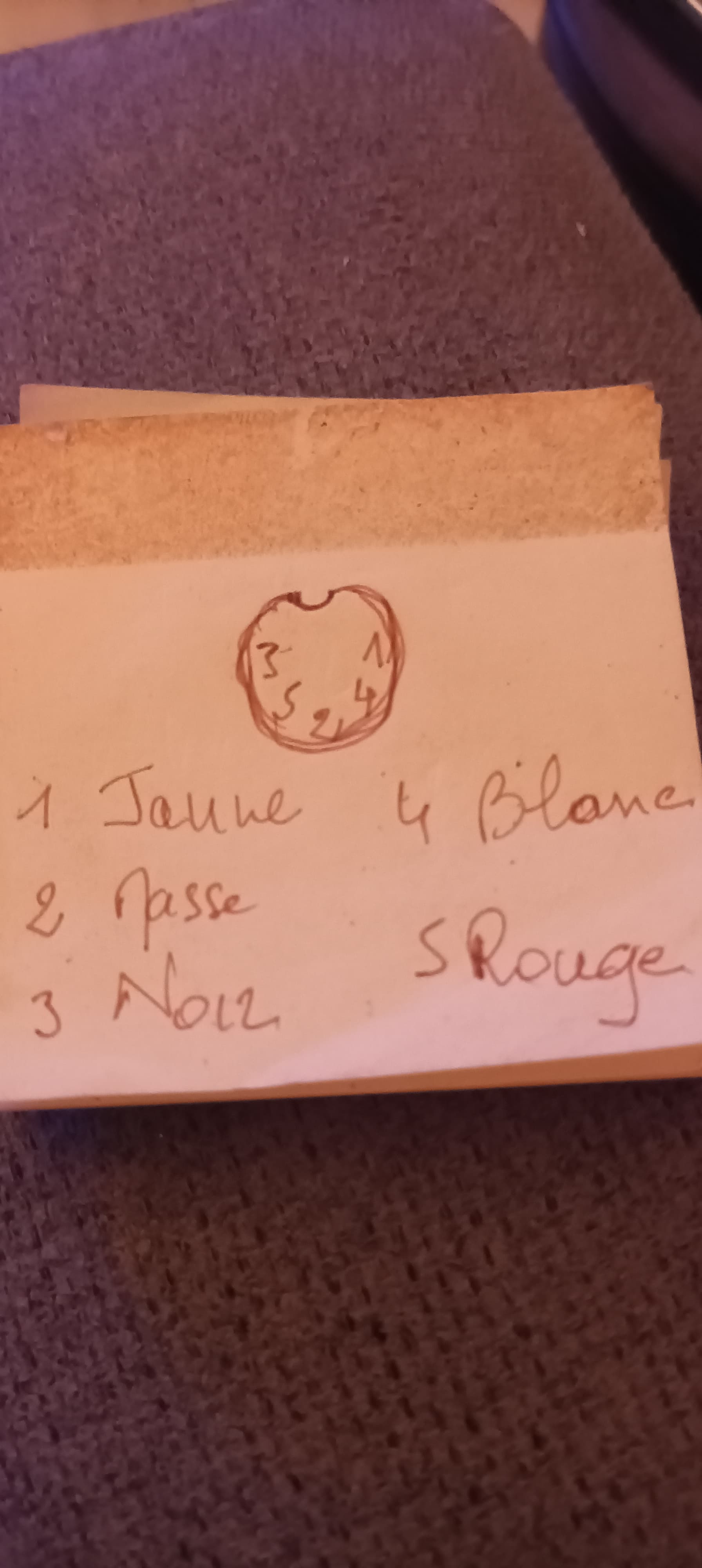 Voilà la correspondance entre les broches de la prise Din , de l’extérieur (je ne l’ai pas démontée) et les Cinch du cordon.