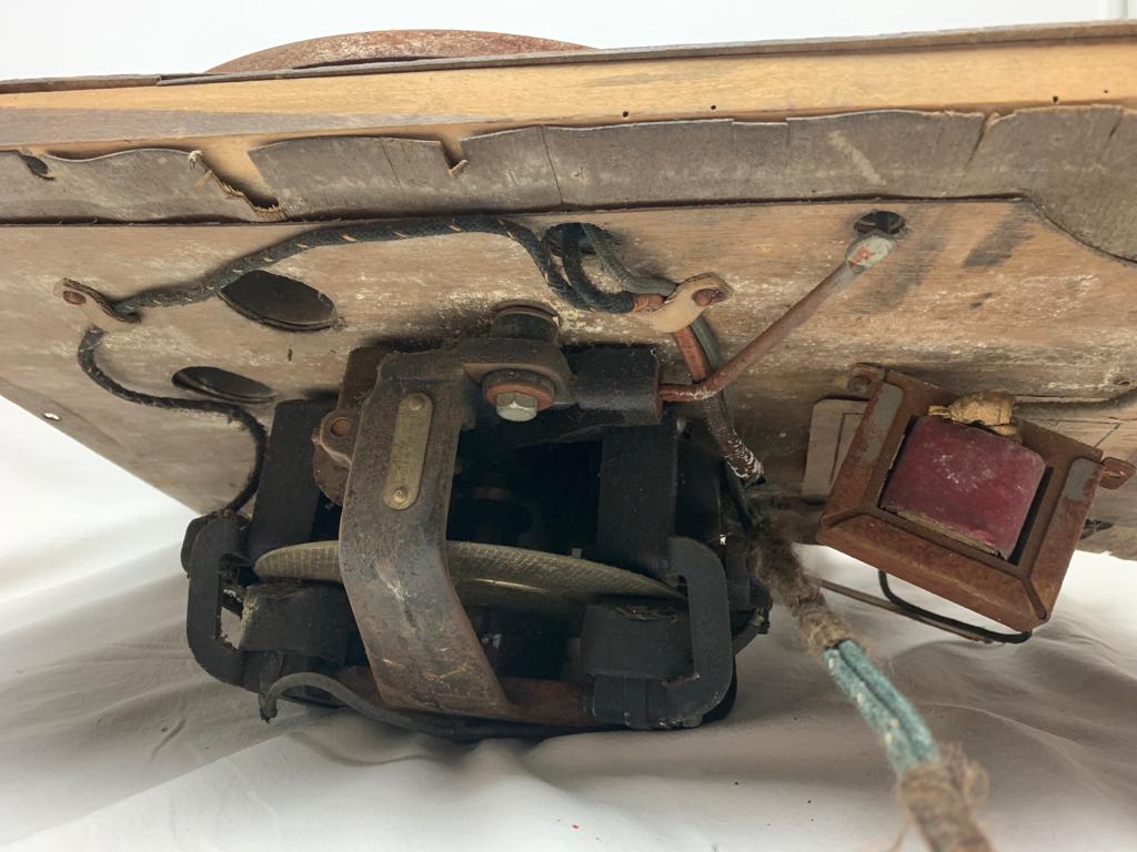 voici le dessous de la platine du meuble RCA ! pas de mécanisme apparent en dehors du bloc moteur , juste un renvoi d’ angle à 90° !