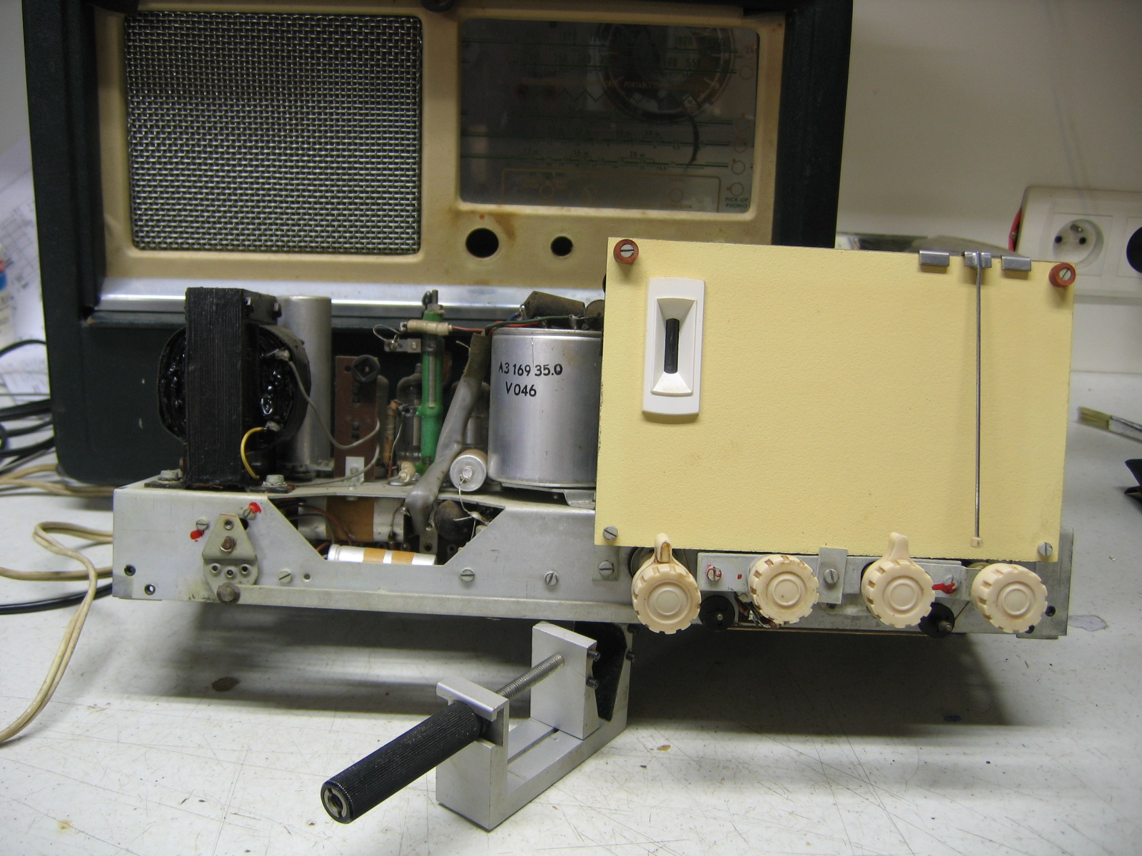 (On dirais qu’il a une « THT boîte de conserve » comme certains TV 819 liges d’a peu près la même époque …Mais sans la tétine !)