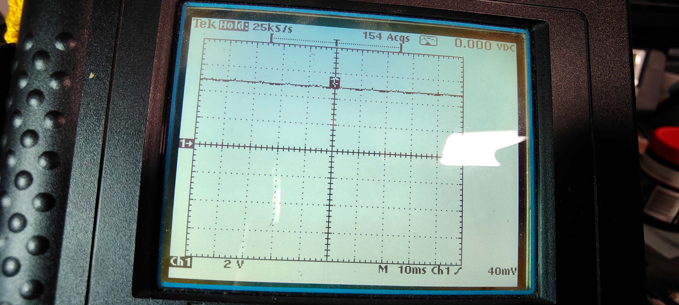 Pin 33 pas de niveau de tension correct mais on voit un bruit de la forme de l’ondulation que l’on recherche…