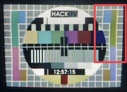 Je veux dire que le blanking libère la vidéo trop tard à gauche et la bloque trop tôt à droite, en bas de l’image, par comparaison avec le haut. C’est pourquoi j’ai écrit, que c’est presque comme découpé. Si on ne regarde que la grille de la mire, elle est presque normale, sauf en haut, à droite. Dans ce coin-là, le problème semble être de géométrie, mais pas dans le bas de l’image.