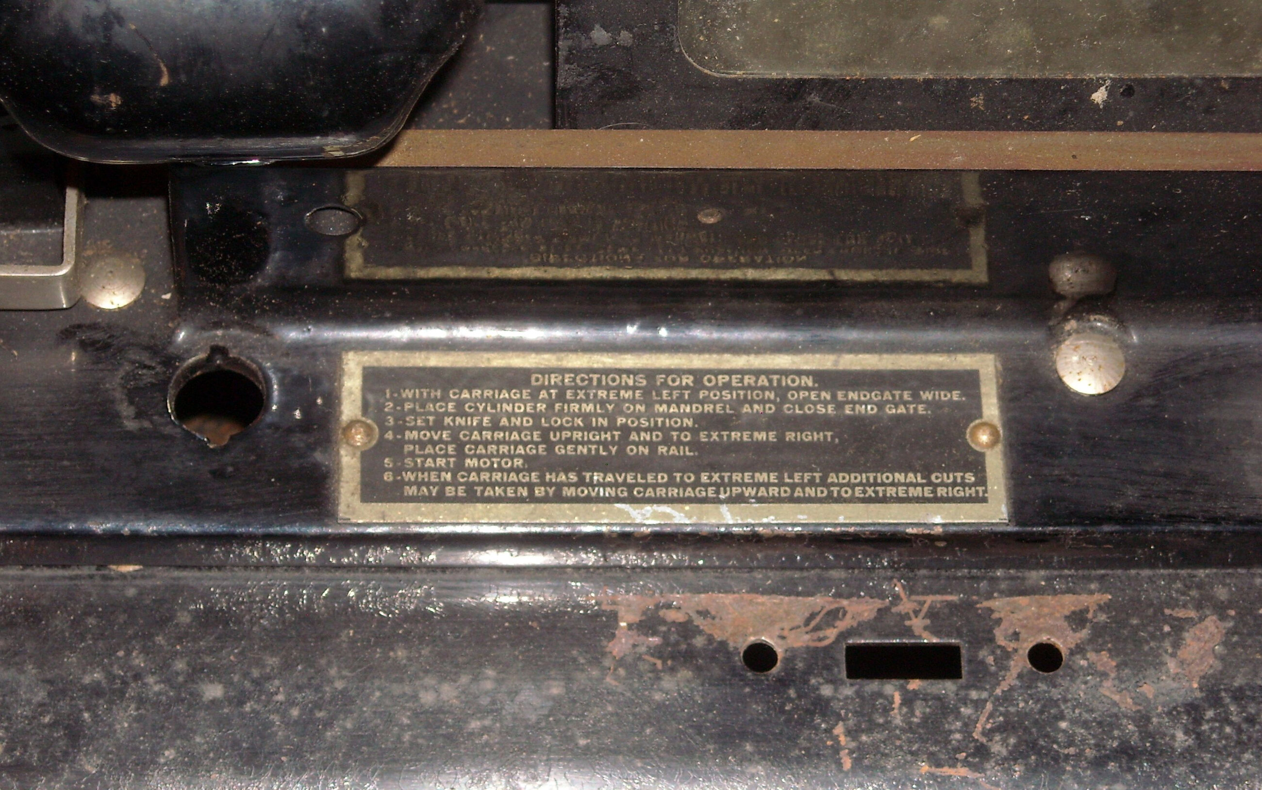 Je pense que le Pdf N° FR 653740 A1928Perfectionnements dans les machines destinées à reformer la surface d’un cylindre enregistré utilisé dans les machines à dicter Correspond à votre machine. (dans les dépôts de brevets il n’apparaît pas bien sur le nom commercial, type ou modèle)