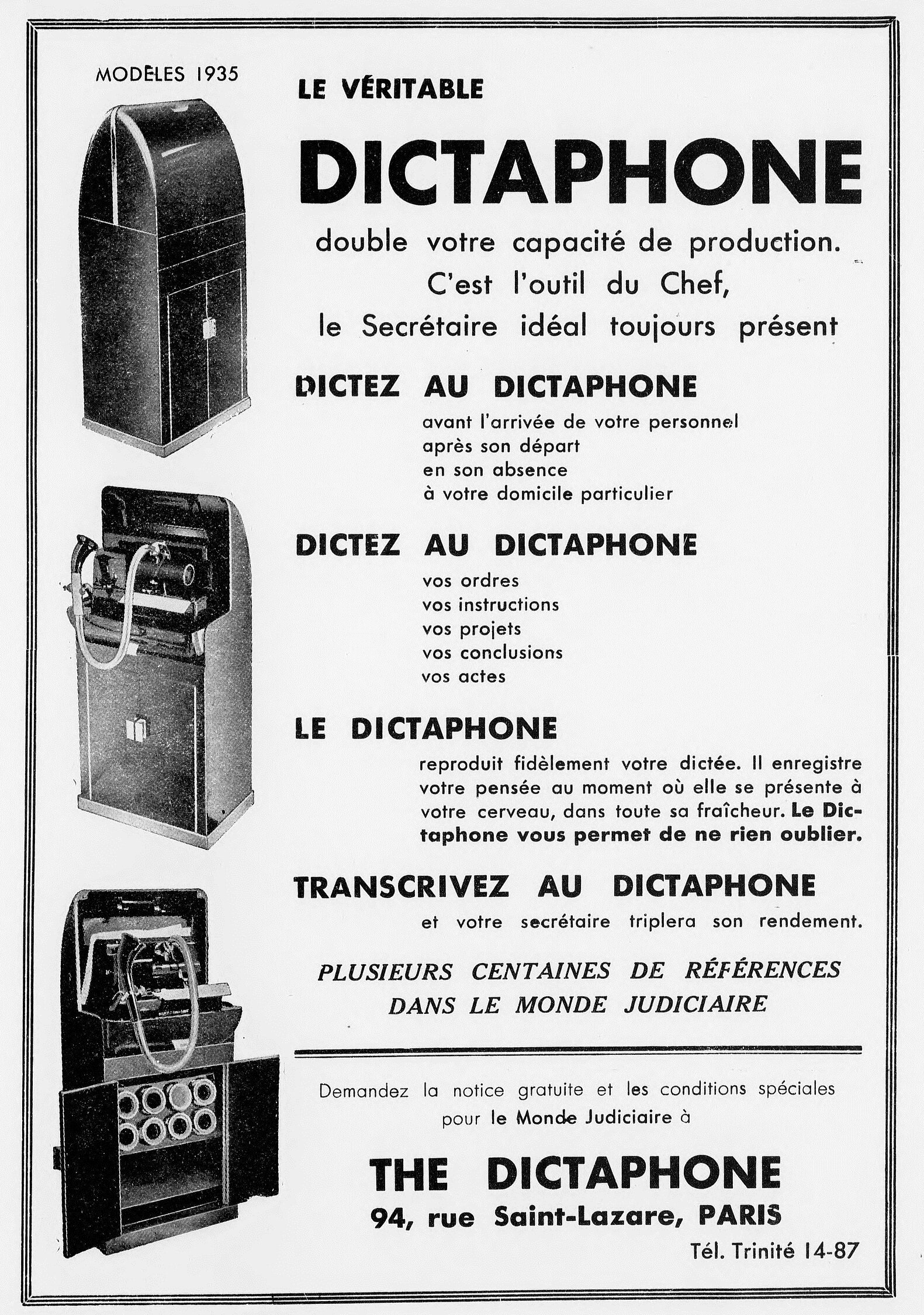 Concernant la Dictaphone Corporation elle a déposé des dizaines de brevets en France. De 1923 à 2013.