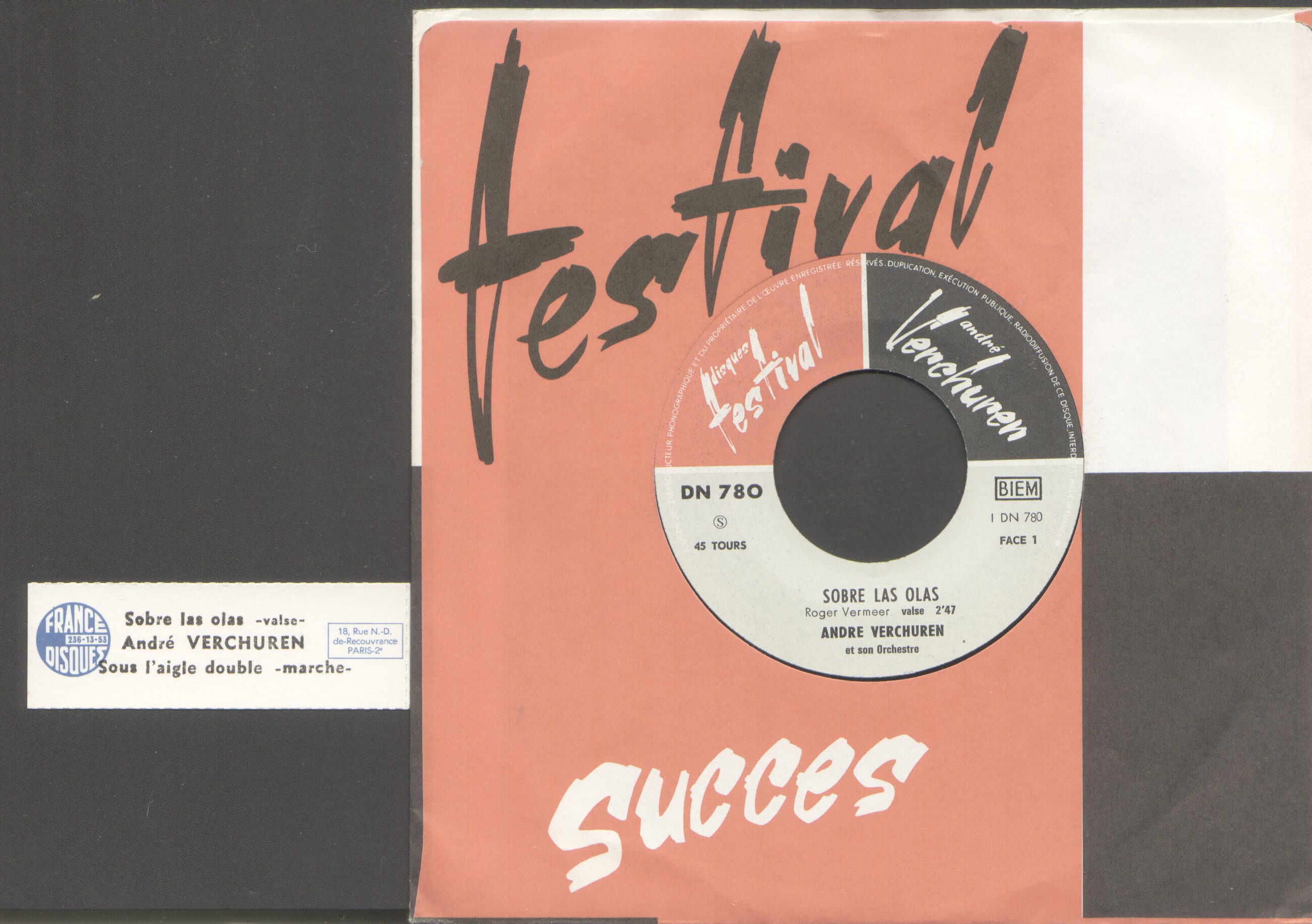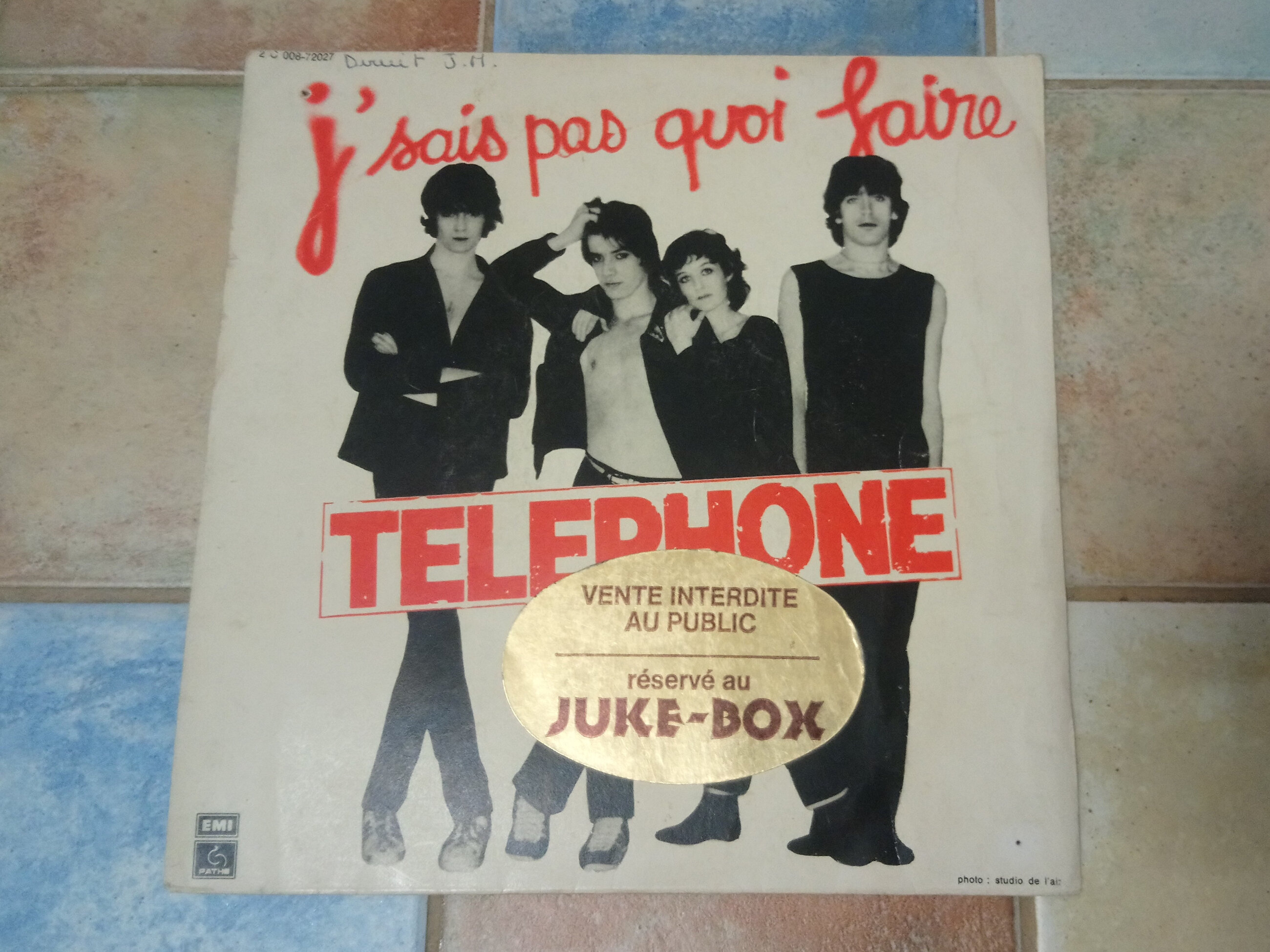 Trouvé ce matin dans un vide grenier parisien, un 45 tours pour Juke-Box avec son étiquette destinée à l’affichage des titres sur le Juke-Box