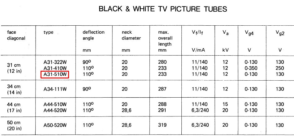 Même si un morceau de l’étiquette qui donne la diagonale est parti, c’est sans doute un A31-510W du milieu des années 70 car les autres référence qui se terminent par 510W sont beaucoup plus grands (44 cm).