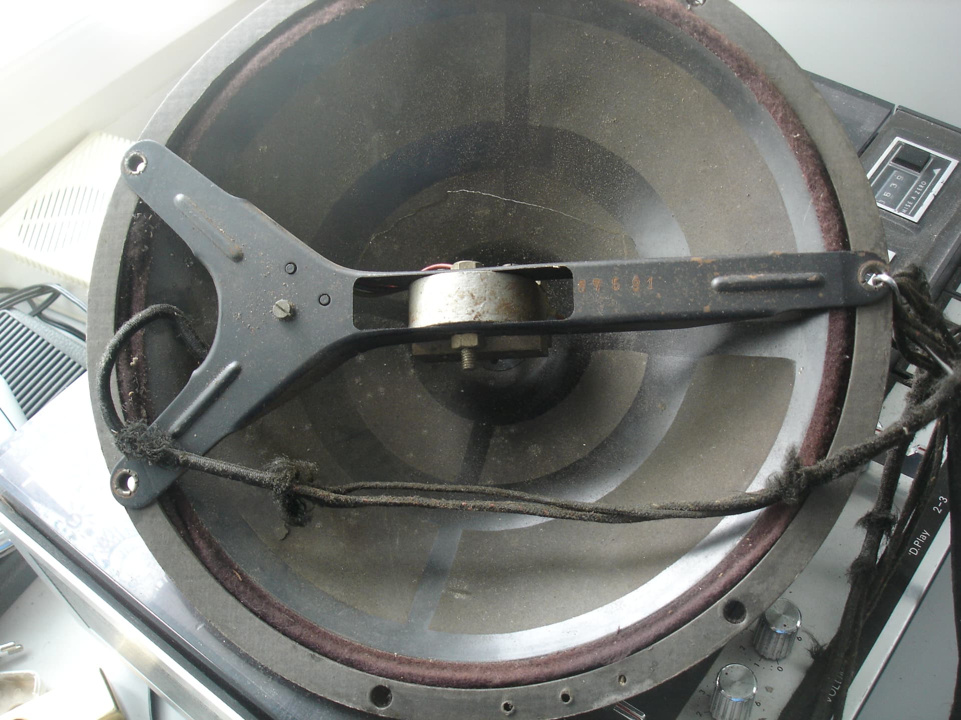 Je donne un haut-parleur Philips à moteur inversé (chapeau chinois) moteur 3 fils, bobine non coupée, petite déchirure du cône.