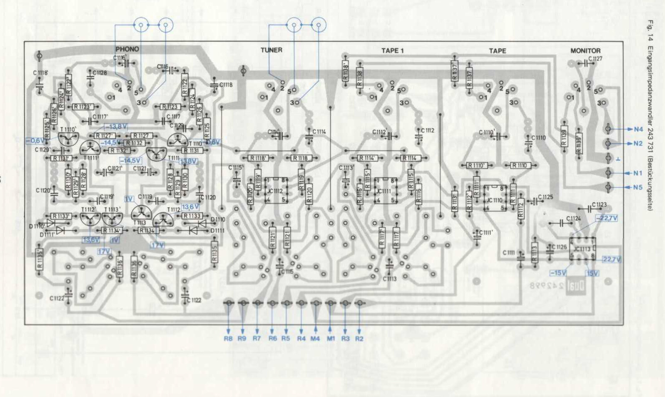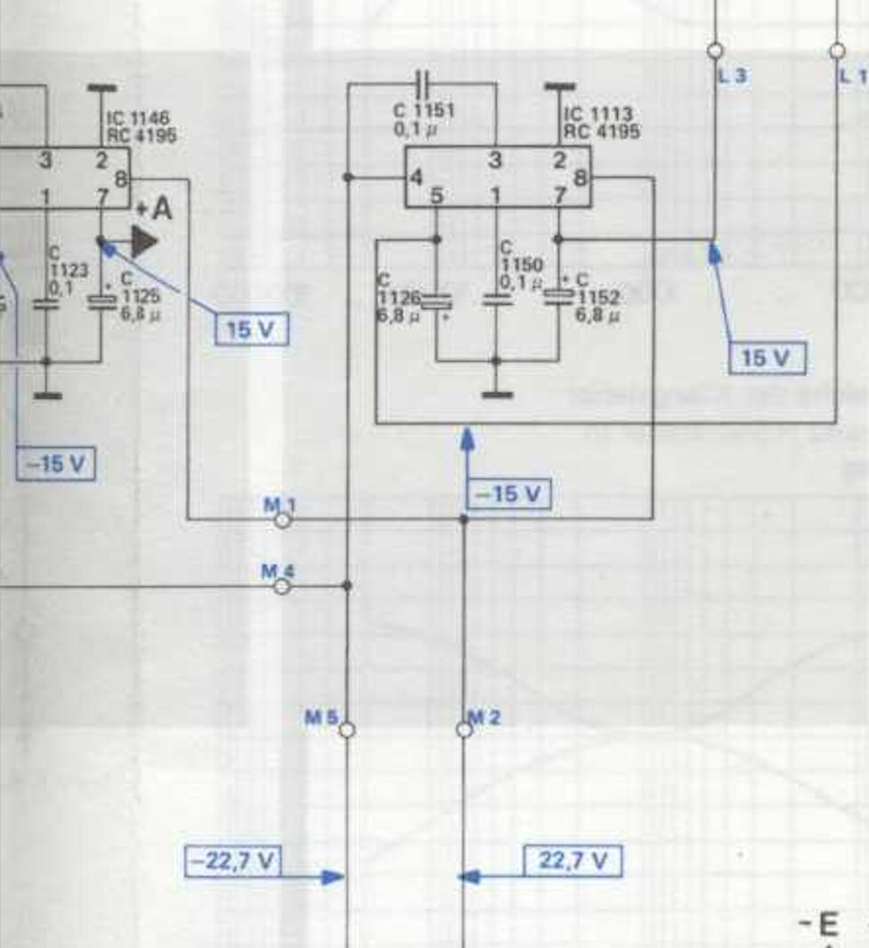 Il y a une erreur sur le schéma électrique, IC1146 est en fait IC1145 (RC4558), et IC1113 est IC1146 (RC4195), comme sur le schéma du circuit.