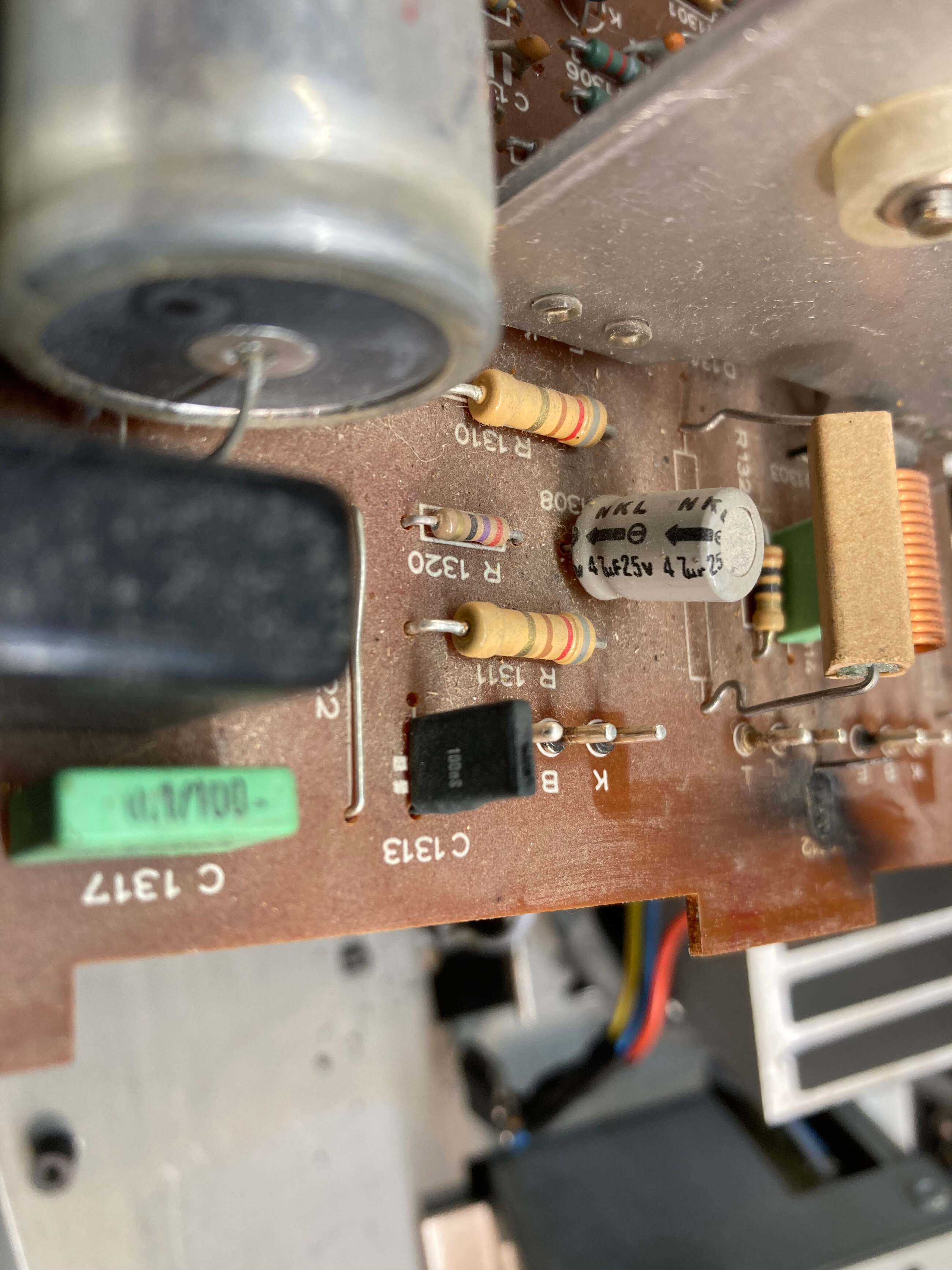 Et je fus très surpris d’ y trouver des condensateurs céramiques qui avaient littéralement brulés;