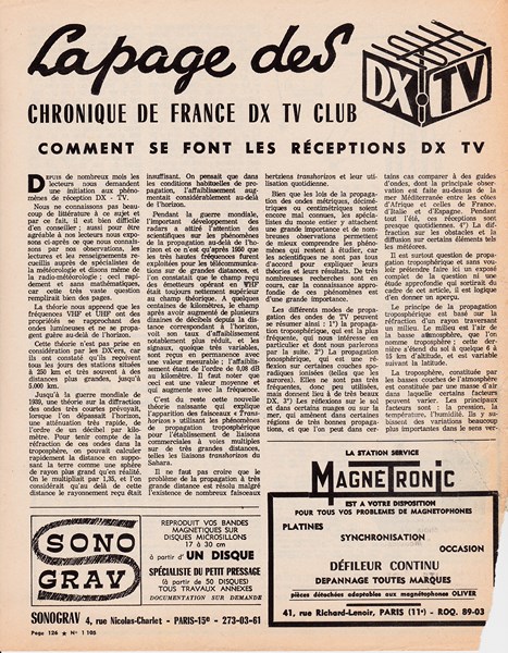 Je viens de passer sur votre site passionnant et cela m’a rappelé quelques souvenirs. Dans les années 60, il y avait dans la revue le Haut-Parleur une rubrique DX TV si je me souviens bien.