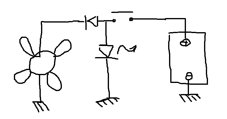 La diode antiretour devra tenir, dans le sens passant, intensité totale du moteur de ventilateur, et dans le sens bloqué les surtensions du a l’effet de self de celui ci , et une 1N4148 est bien trop frèle pour ça .