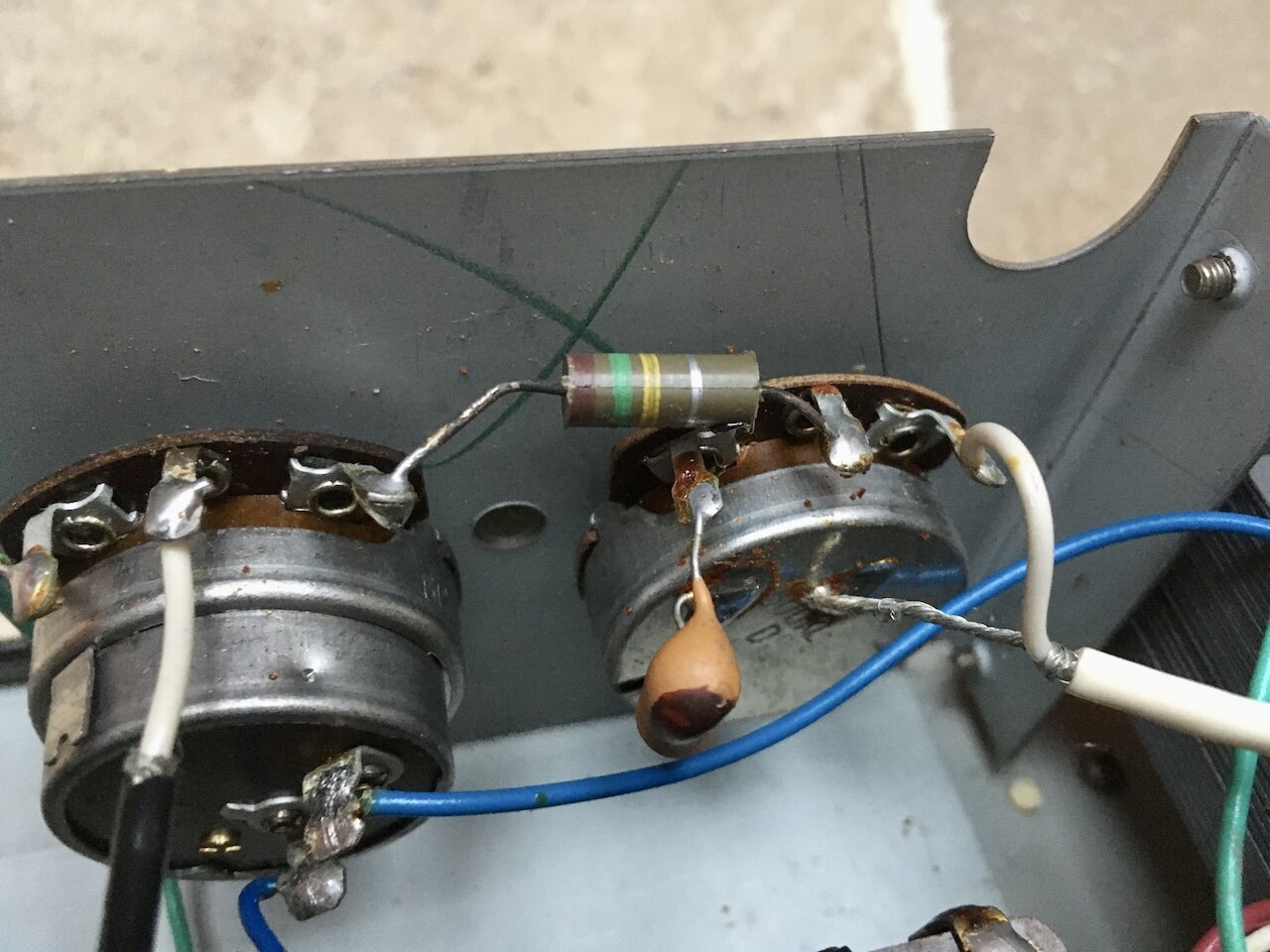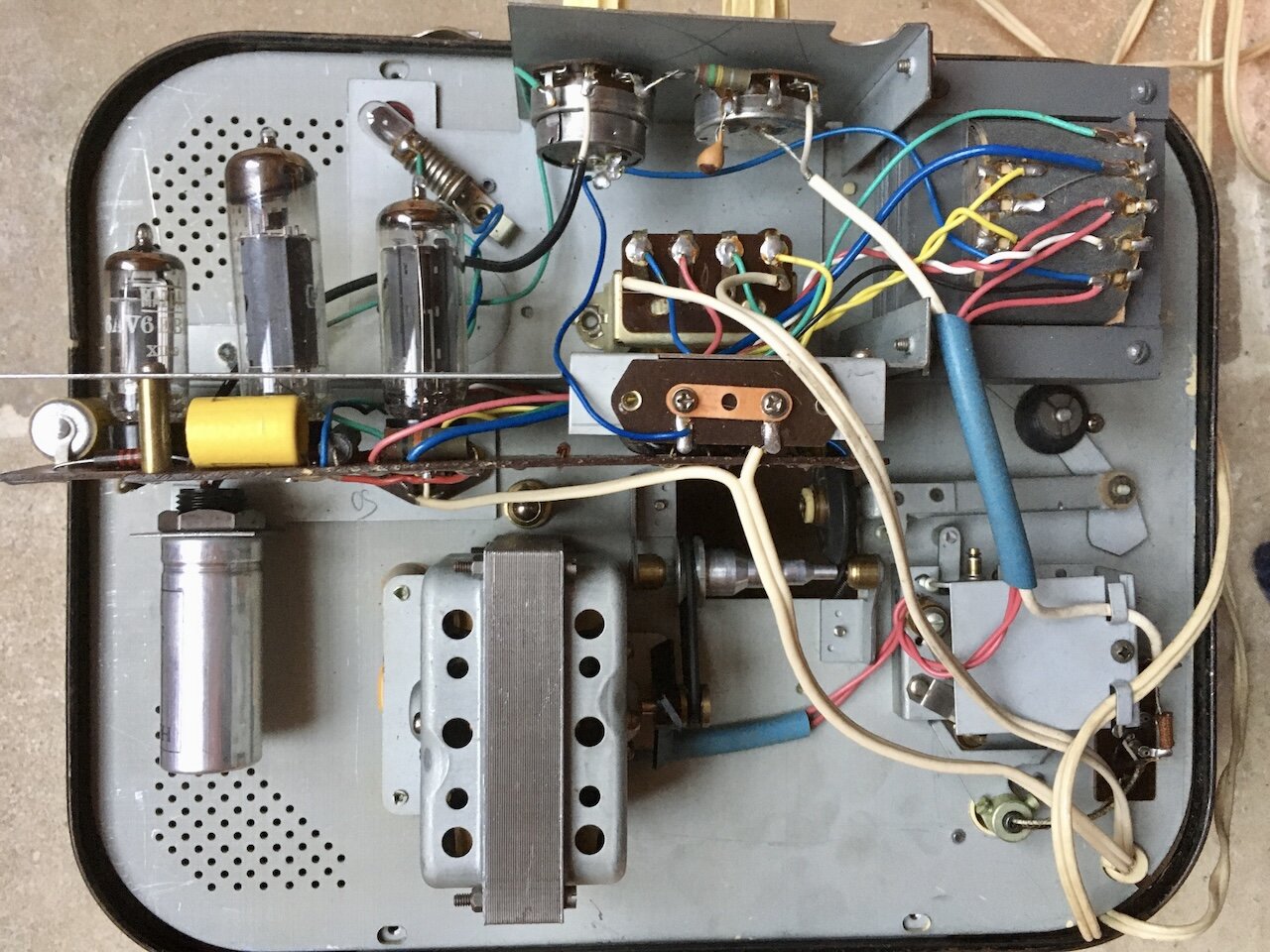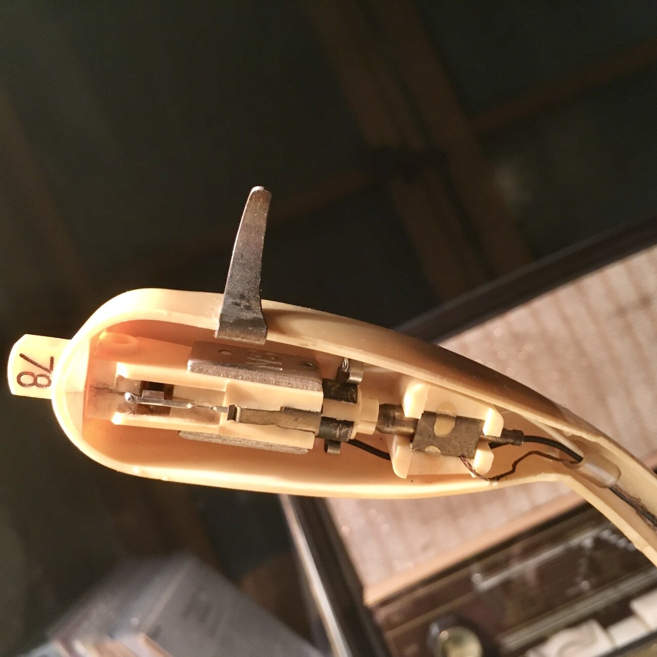 Il y a certainement des condensateurs à changer; je perçois une sensation de courant lorsque je touche le châssis. Pour aller plus loin dans la restauration, il faudrait d’abord que je puisse y adapter une autre cellule.