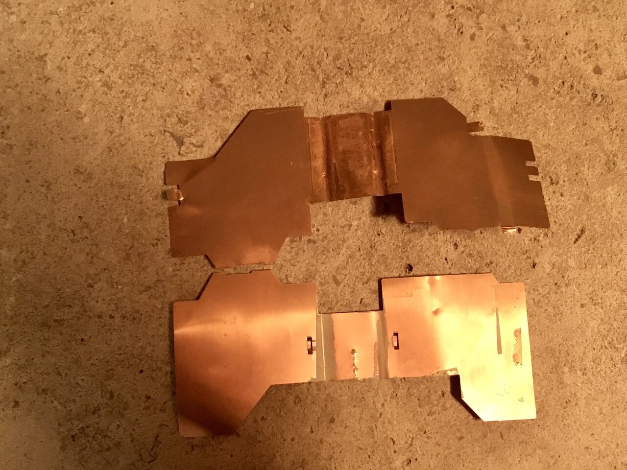 Eventuellement, j’ai ces plaques de cuivre qui entouraient un transfo de MacIntosh. Je pourrai peut-être les recouper et les relier ?