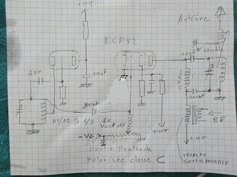 Et si ça marche toujours pas j’irais mettre un mélangeur en anneau polarisé par un potentiomètre me permettant de régler le niveau de porteuse et y superposer de la BF pour moduler tout ça ,entre la sortie de l’oscillateur et la grille penthode toujours en classe A !
