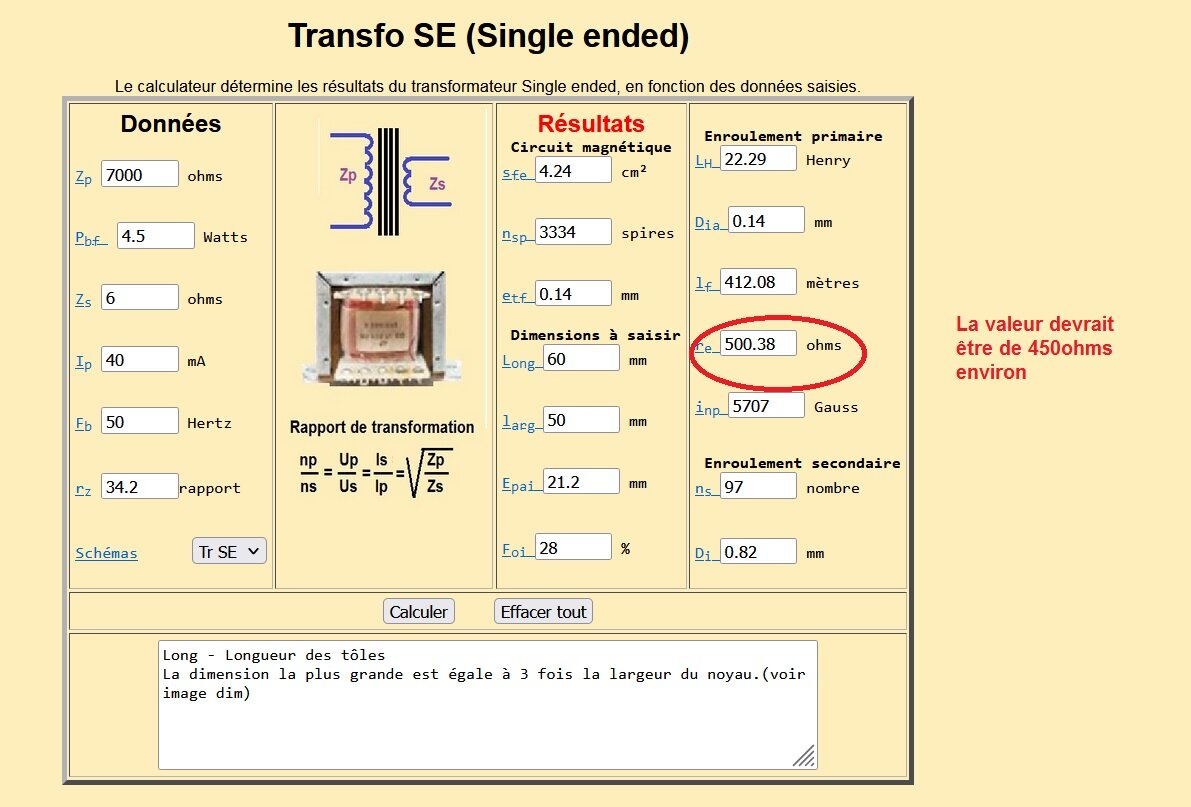 Voilà sur ce calculateur la valeur en ohms est fausse