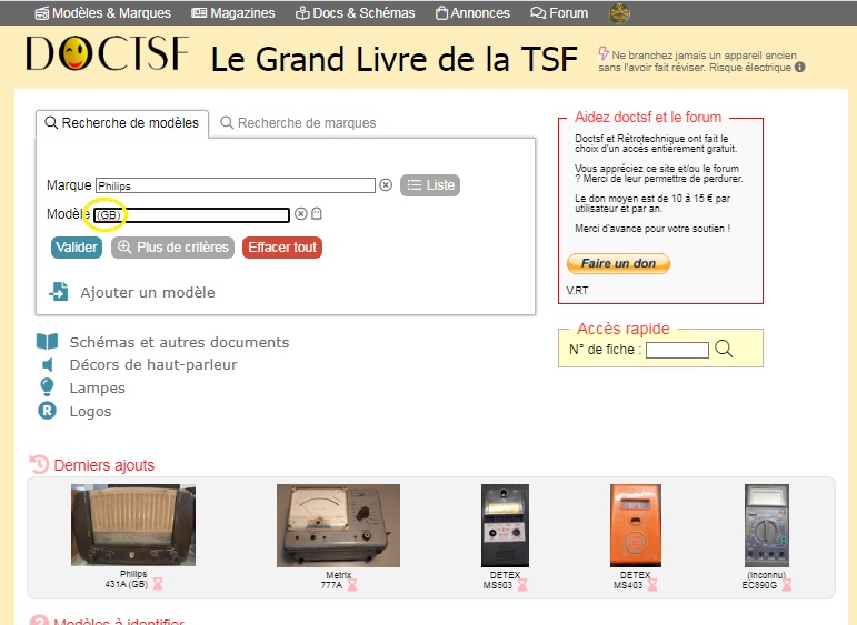justement @Jean-Michel_Bourque , pour philips il faudrait créer en plus le pays car les modèles hors france et hollande ont quelques différences d’aspect et autre.j’ai un 472a GB equivalent au 638a et il a la grille hp différente. marconi est bien classé avec plusieurs pays.
