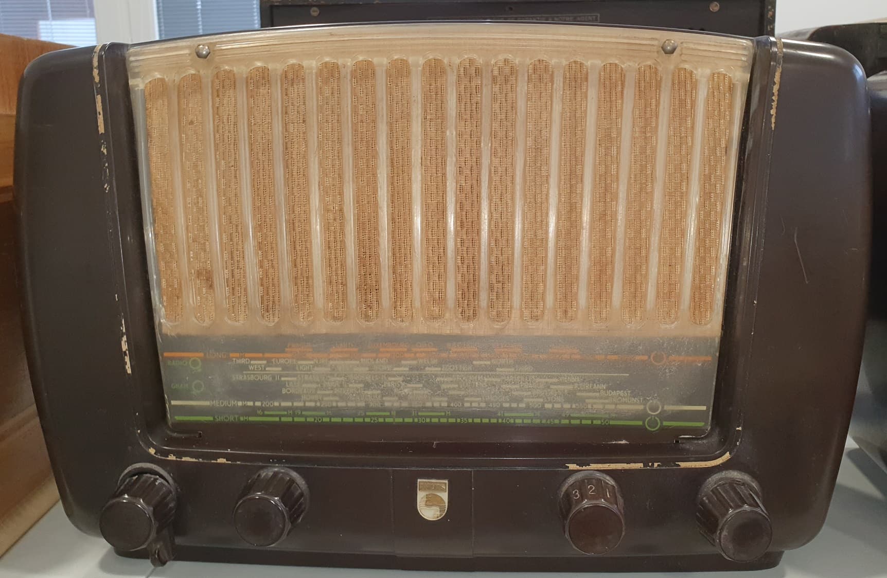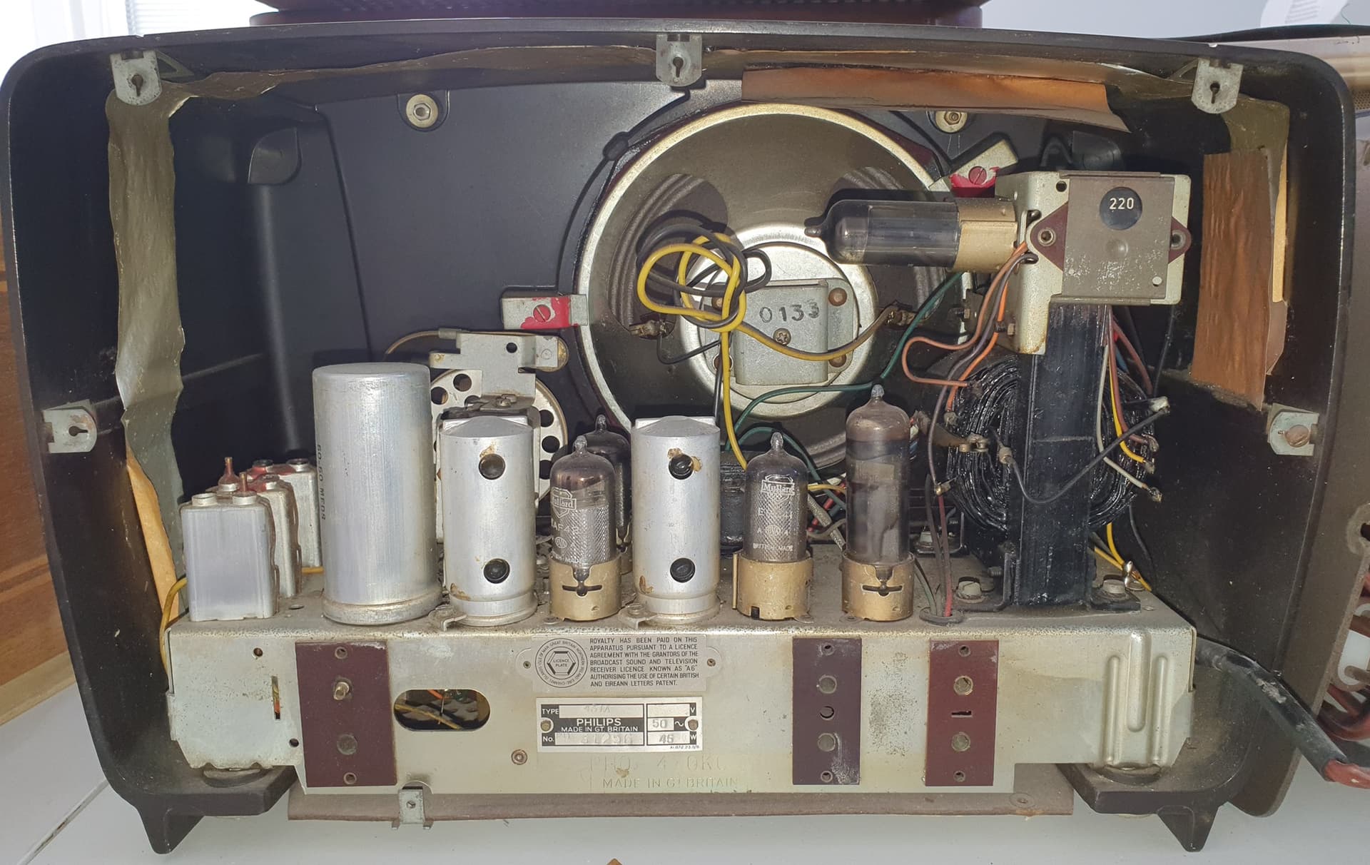 J’ai récupéré un poste parmi « le don de 500 postes sur Cherbourg » c’est un Philips 431A « made in Gt britain » avec ces lampes : ECH42, EAF42, EBC41, EL41,EZ40.