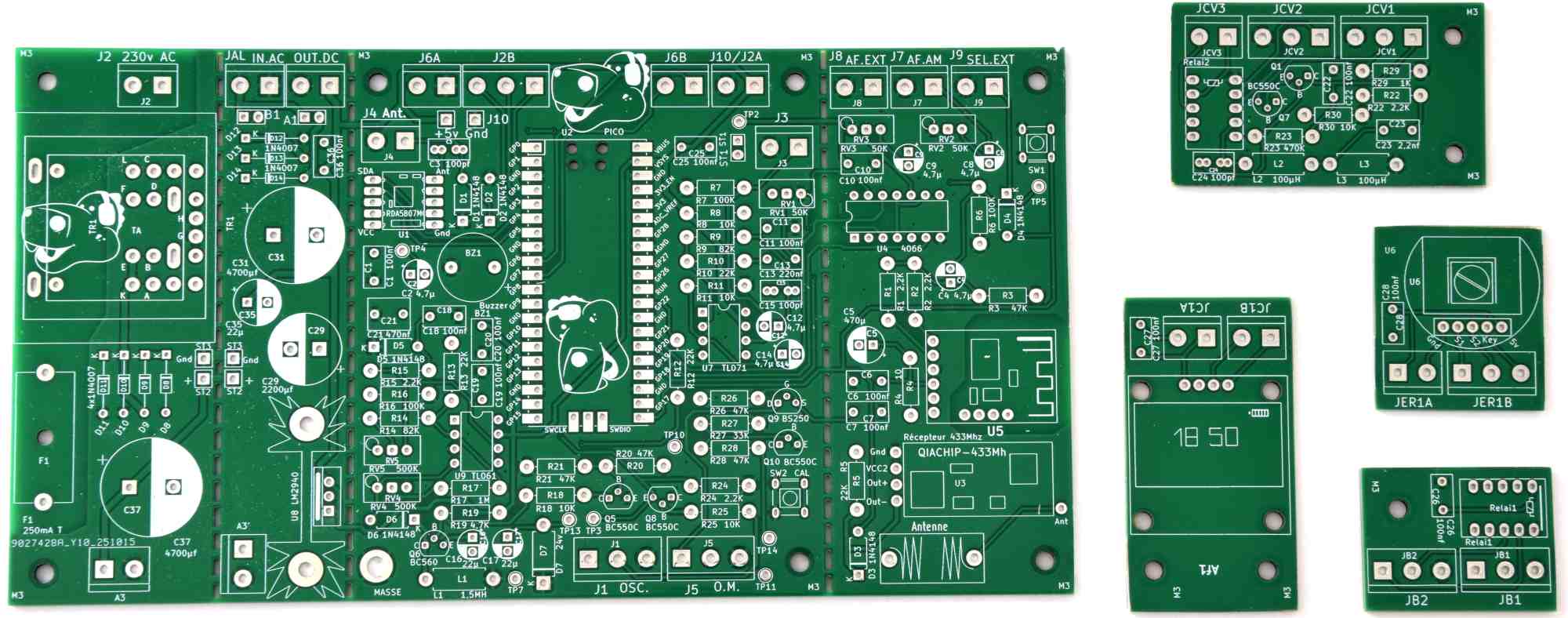 Ci-après, complet avec l’alimentation secteur, en cours de test (les circuits sécables n’ont pas encore été séparés) :