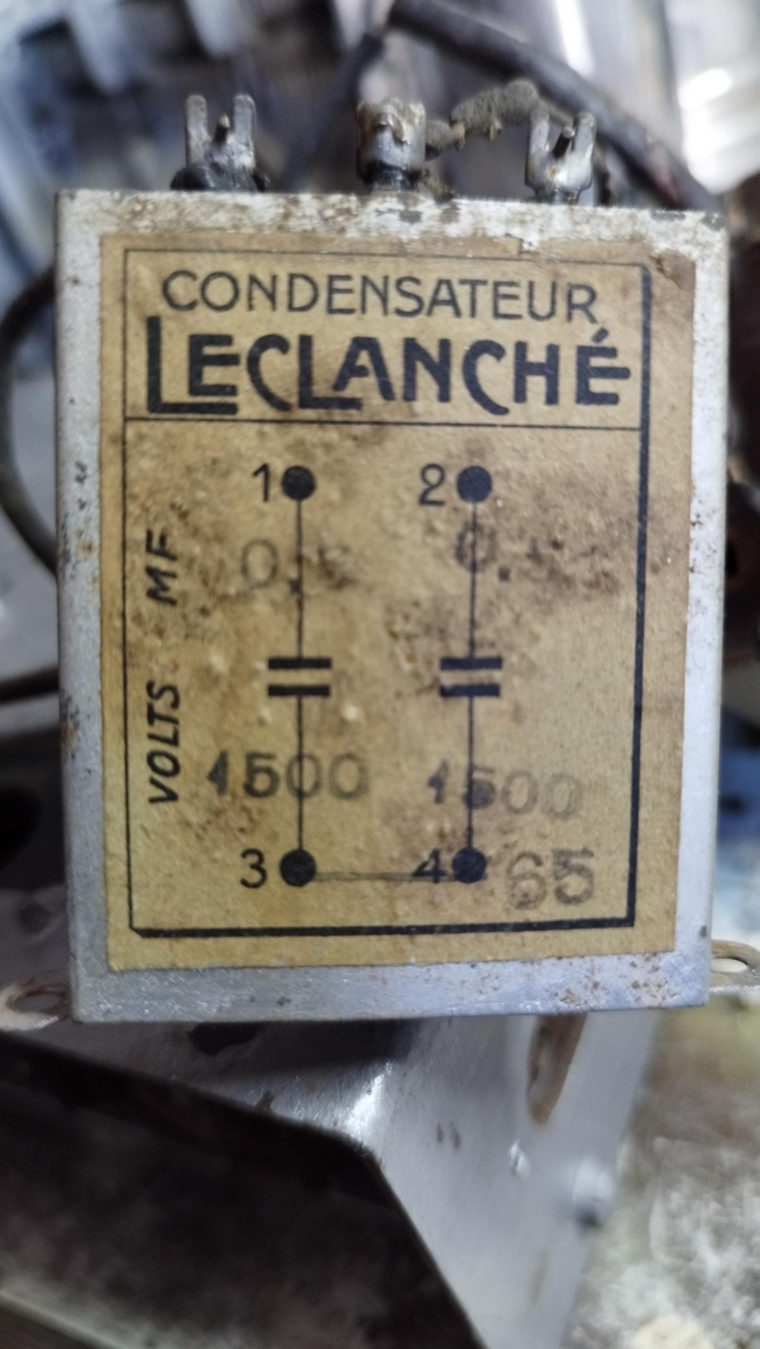 j’ai commencé la restauration du GMR echo 546 , à parement il n’y a pas de schéma de la bête , je bute sur la boite à condos Leclanché ci-joint , comme il y a deux condos et trois broches , la broche du milieu doit être le commun ? , le transfo est aussi coupé sur la HT , ça commence pas bien !!!