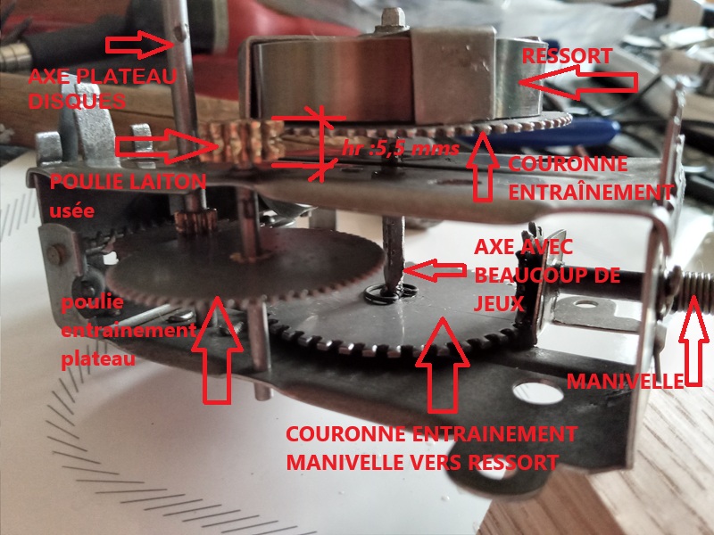 merci à ‹ phonodesbois › qui à pu me dépanner de la poulie laiton que j’ai remonté sur l’axe sans difficultés