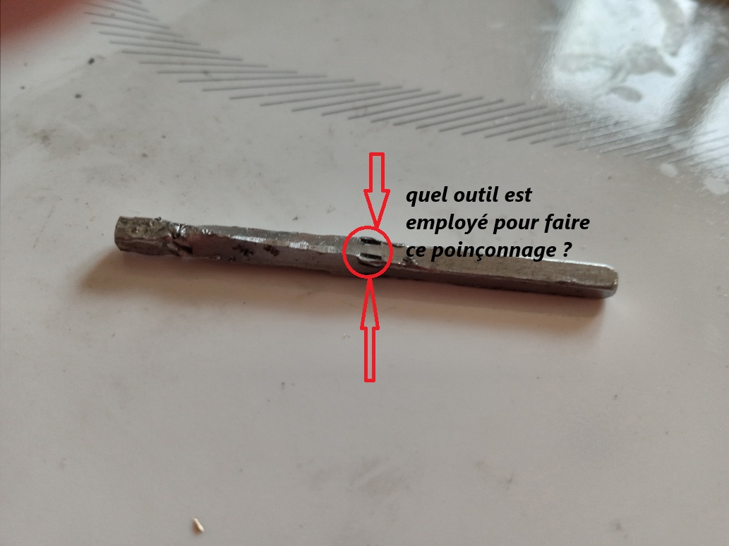 suivant la photo jointe, j’aimerais connaître quel outil était utilisé pour poinçonner les axes ou autres pour éviter qu’ils ne bougent de leur logement…