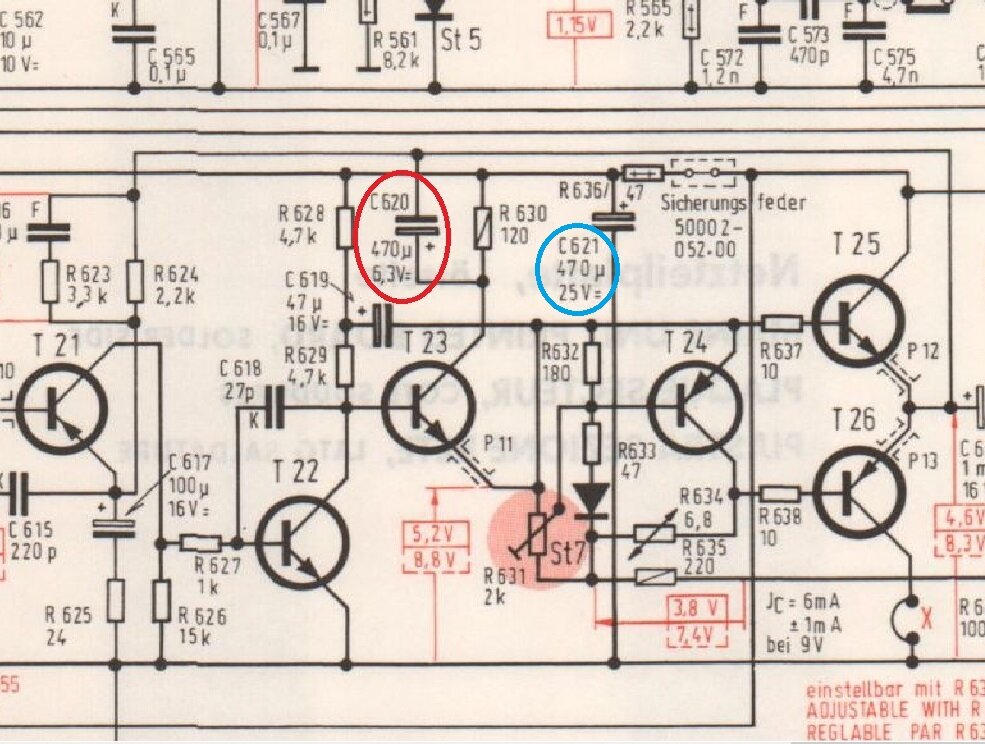 Je pense qu’à l’heure actuelle un 470 µF en 6,3 V ne doit plus se faire. Les composants sur le Grundig datent de presque 50 ans.