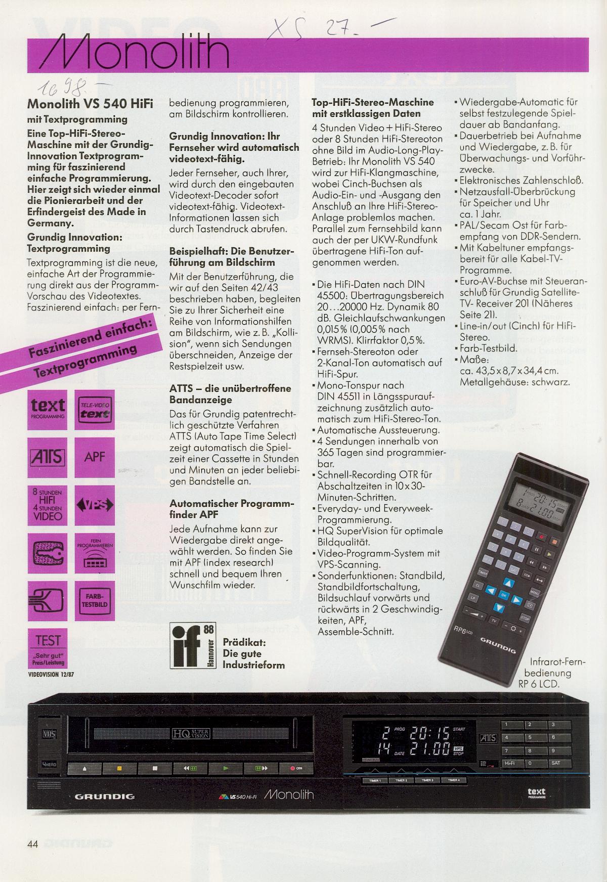 En effet, j’ai possédé un VHS VS 545 EURO HIFI équipé d’une mécanique Panasonic MVS III de très bonne facture en 1990. Je vais être en hospitalisation de jour jusqu’à 10h30, puis je dois passer à la pharmacie et recevoir deux vaccins. Je te fournirai des détails dans l’après-midi.