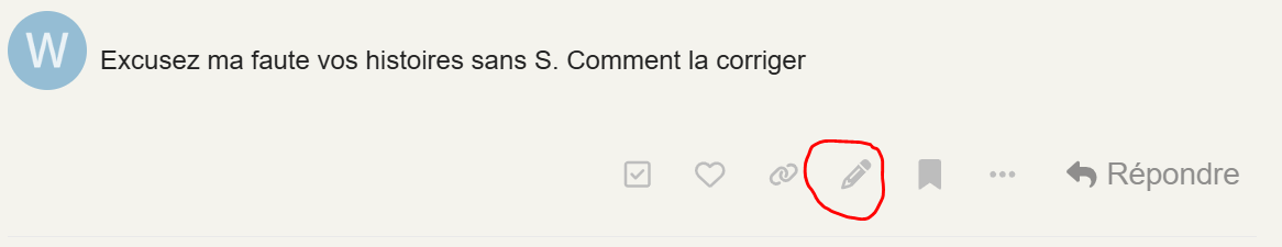 avec le crayon en bas du message qui permet d’editer le message et de le modifier