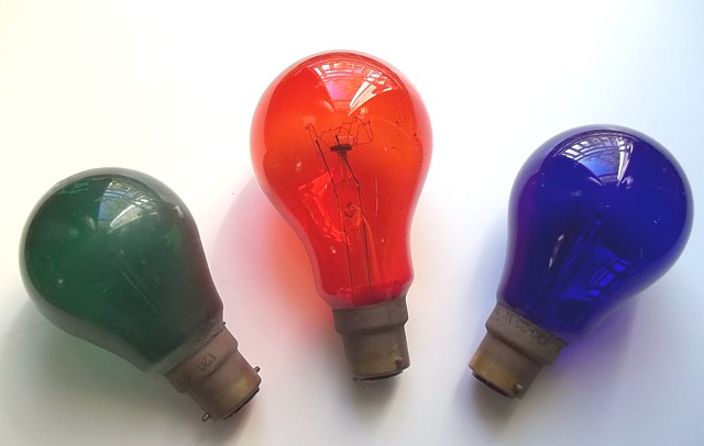 3 lampes standards couleurs, 110-130V, B22 (années 1940…50)