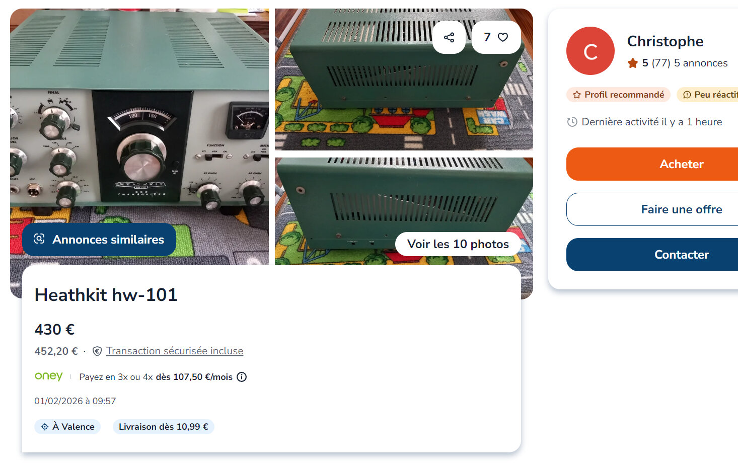 j’en possède 2 HW101, un réputé fonctionnel, l’autre “à réviser”. Mais je n’ai pas l’alim : il faut que j’en construise une et il y a du boulot pour construire une alim pareille.