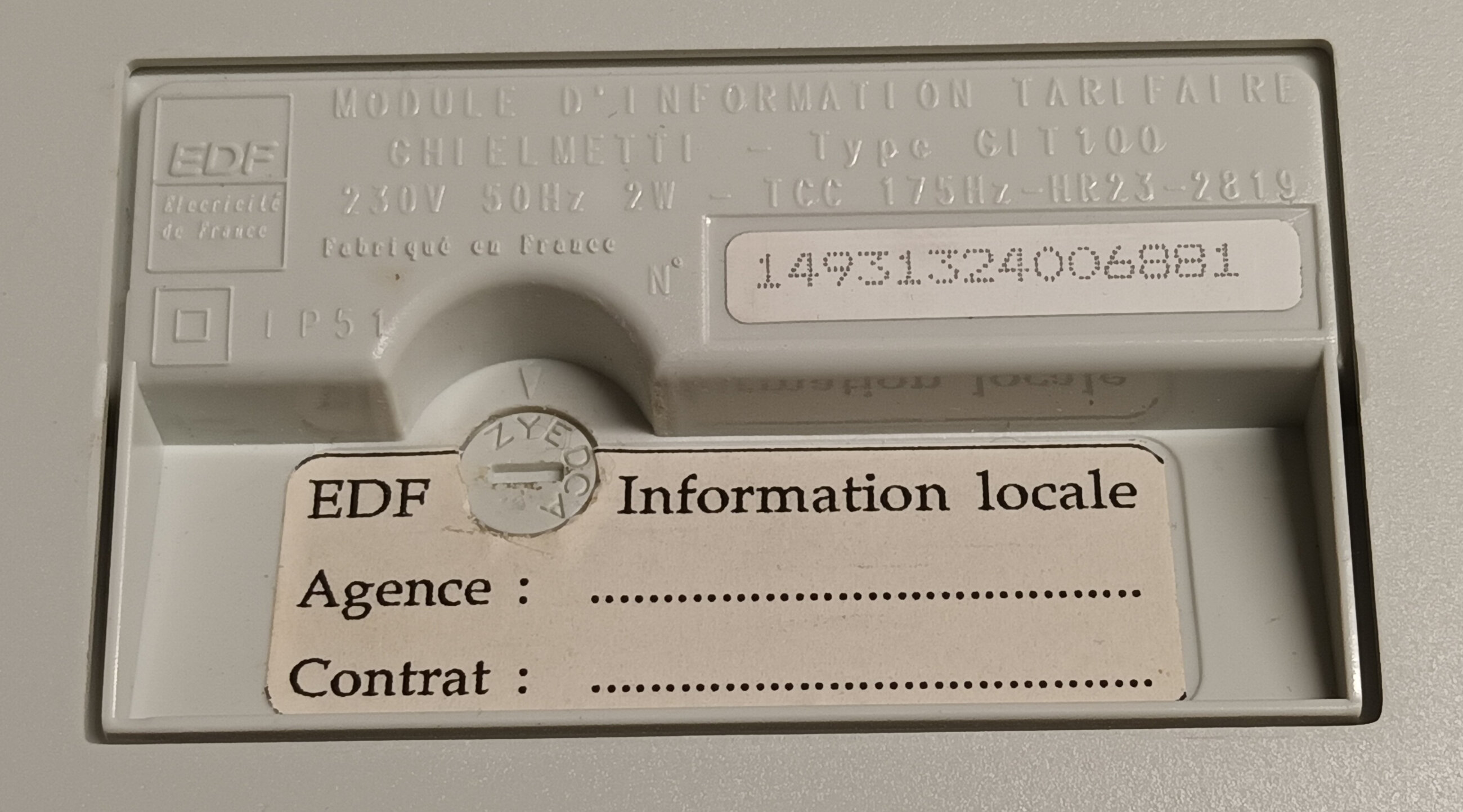 J’ai fait une photo du dessous d’un des boîtiers et il s’agit bien d’un boîtier distribué par EDF , il est possible qu’il n’y en ai pas eu beaucoup de produit, je ne sais pas du tout, par contre ça ne sais afficher que ce qui sort de Pulsadis, je pense qu’il faudrait voir ce qui est proposé aux clients depuis l’avènement de Linky, je ne sais pas