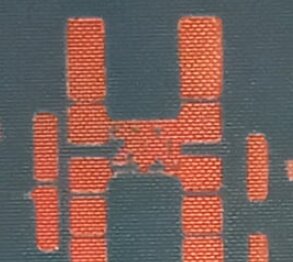 Après examen en gros plan, on se rend compte de la difficulté d’obtenir le détail sans le boucher. J’imagine que la finesse de la trame de toile doit avoir son importance, ainsi que la fluidité de l’encre (ou peinture). C’est visiblement un art difficile à maitriser. Il faut persévérer.