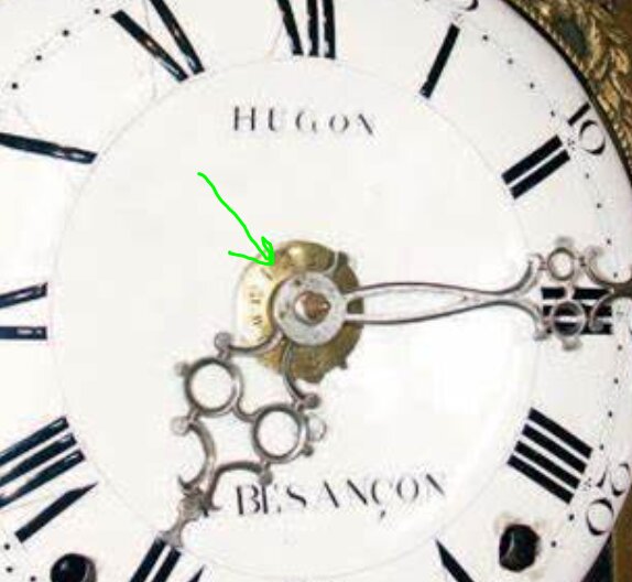 démonter les aiguilles, attention celle des heures est maintenue sur certains mouvements par une rondelle dont la découpe intérieure est carrée, donc, il faut avec une petite pince gros becs, faire tourner cette rondelle de 1/ième de tour afin de la retirer.