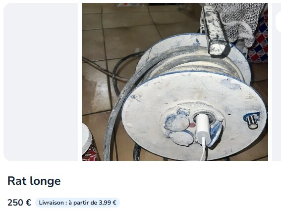 A vendre rat longe dans un état irréprochable, servis SEULEMENT 2 fois pour alimenter les autos tamponneuse dû cousins joseph faites pas attention au trace blanche c’est une série limitée, c’est pas volé n’allez surtout pas chez brico dépôt, faire offre. Si tu viens t’achètes sinon tu prends une bougnette