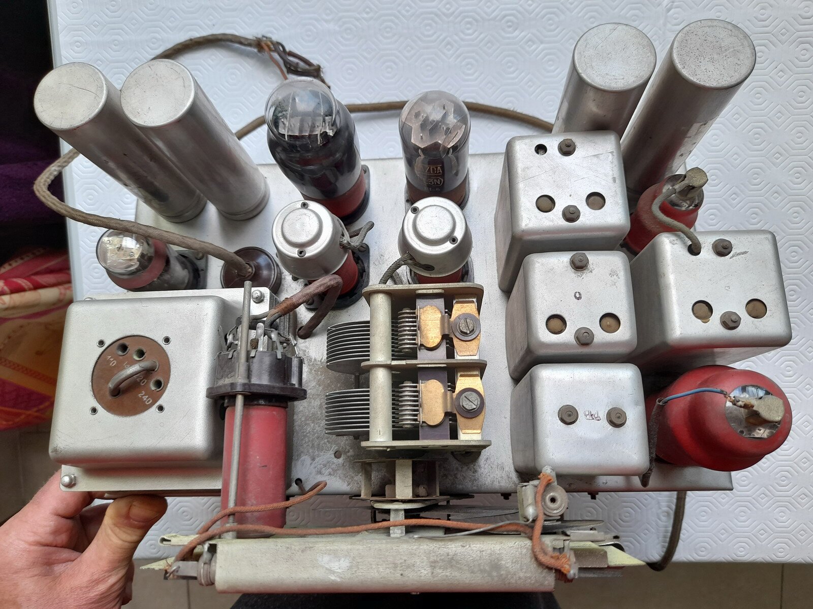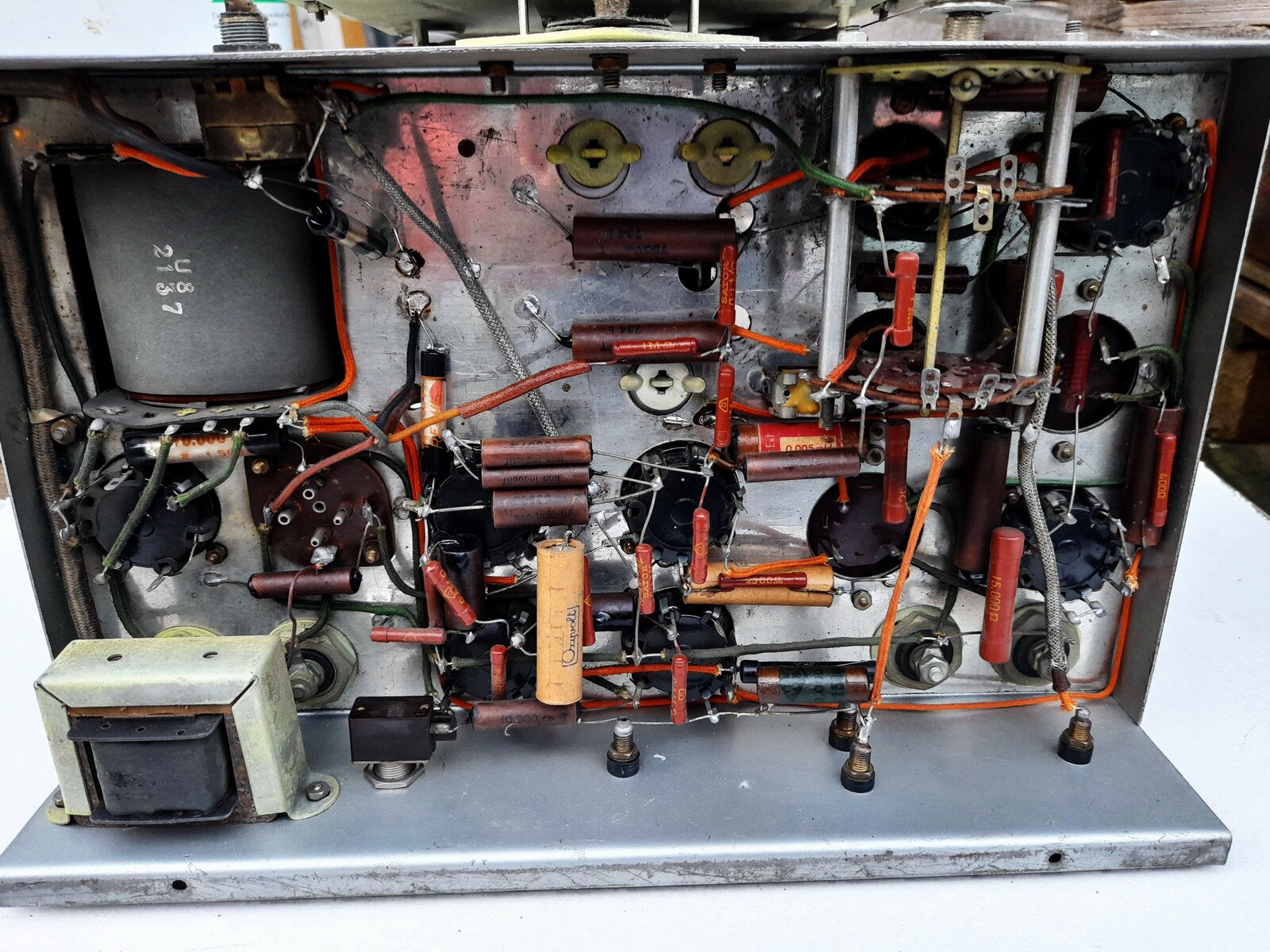 du tout à fait classiqie pour cette époque : le strict utile en composants , bien aéré , et pas bien compliqué , mais quand même un 8 lampes semble t’ il en comptant l’ oeil !