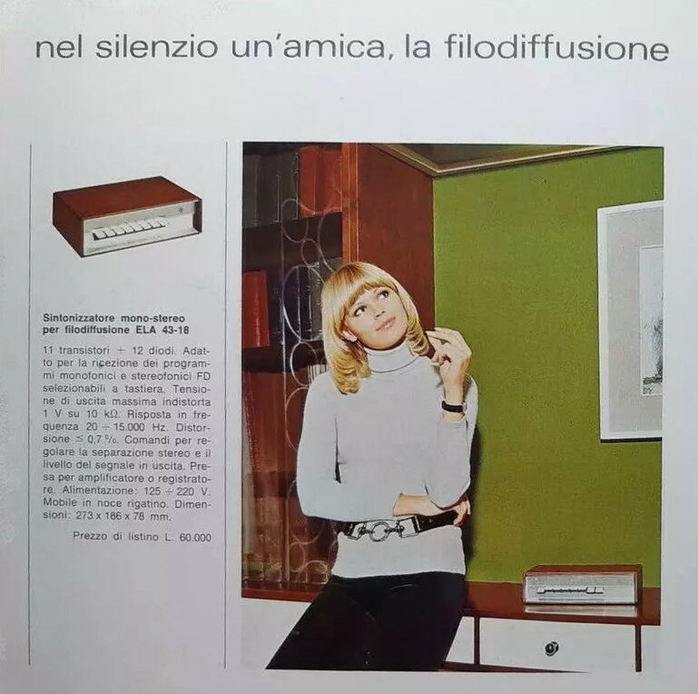 J’ai bien compris que ce sont des récepteurs filaires qui étaient utilisés essentiellement en Italie (et aussi certainement fabriqués dans ce même pays), mais vraisemblablement ils ne reçoivent pas directement les fréquences GO mais seulement le contenu des émissions à travers la ligne téléphonique où la RAI (Radio-télévision italienne) proposait à l’époque des canaux spéciaux de qualité audio équivalente à la FM.