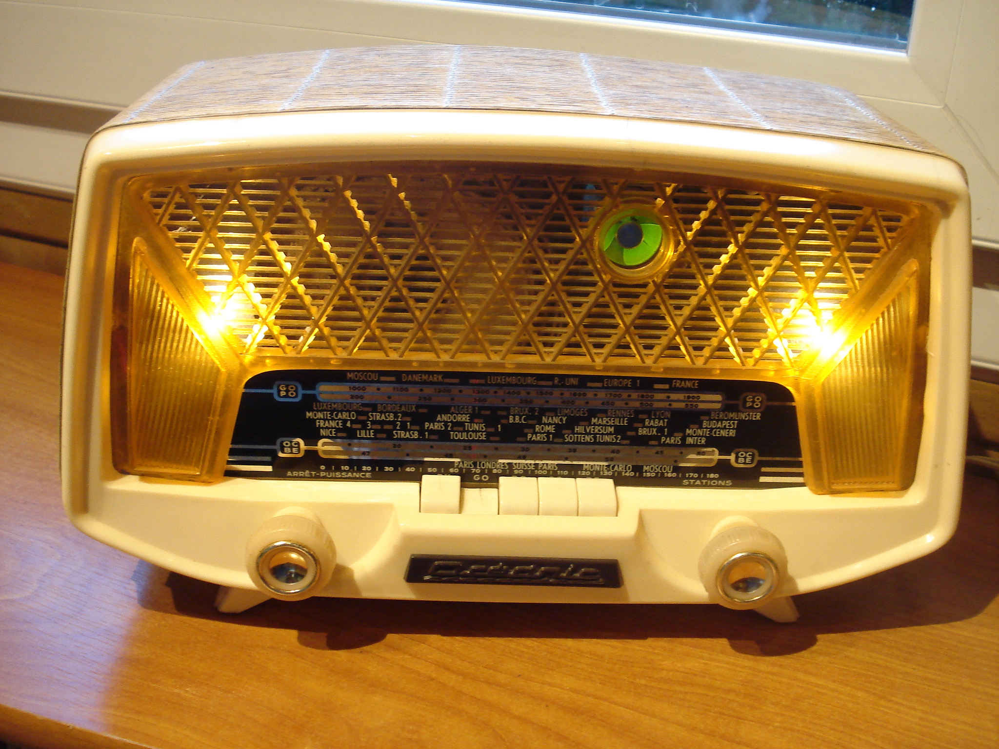 La réalisation laisse un peu à désirer mais je partage globalement l’avis de Radiolo. Le type qui a fait cela ne s’est pas contenté de monter des pièces du commerce. Il a fabriqué ses pièces lui mème, y compris semble t’il certains boutons, les CV… . C’est un beau délire d’amateur, à mon sens bien plus estimable que certains postes à lampes extérieures de marque de construction basique qui sont proposés à des prix comparables. Bref, une curiosité…qui risque fort de n’intéresser personne, car les collectionneurs sont plus moutonniers que curieux.