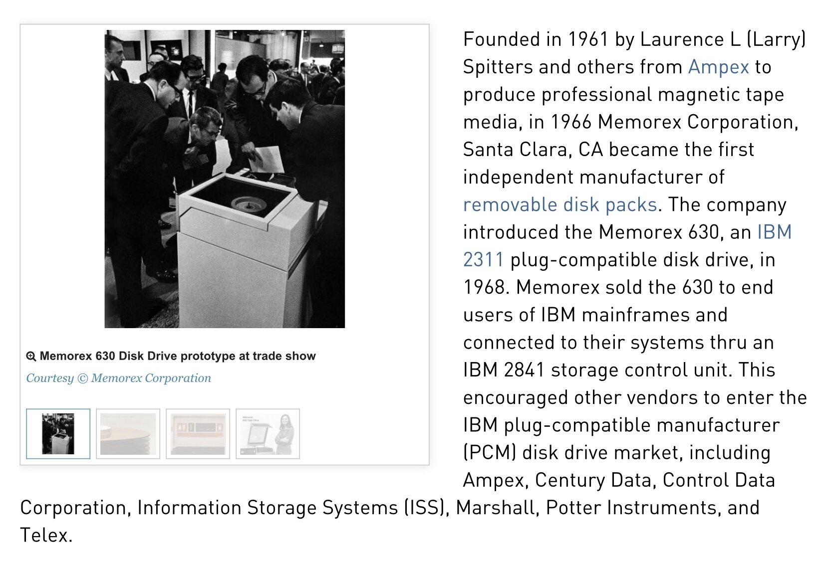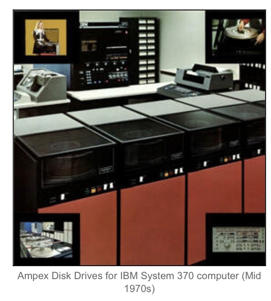 en 1978, lors de mon entrée chez Ampex, la firme vendait des disques durs à packs amovibles compatibles IBM 360 format « machine à laver » comme celles-ci :
