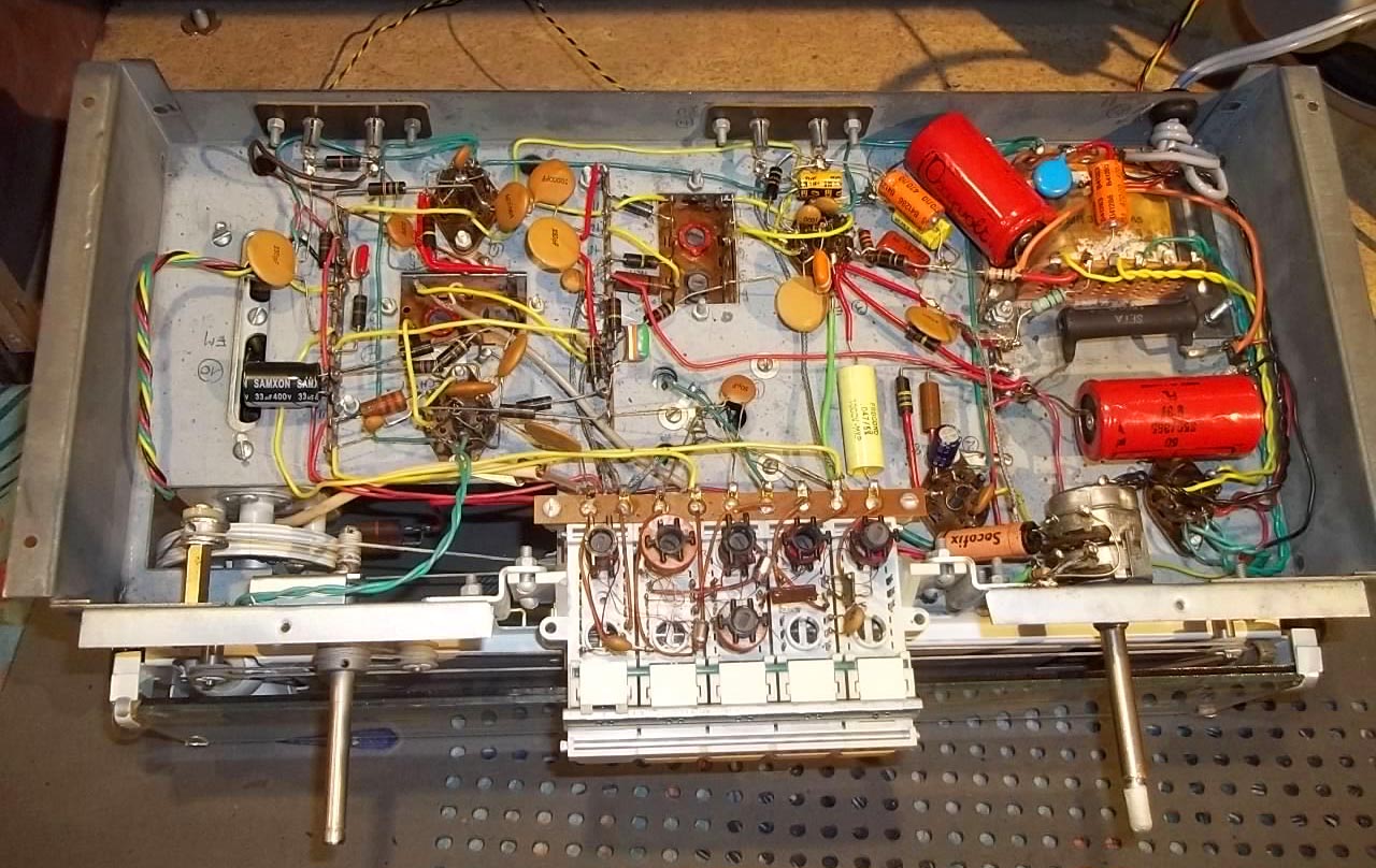 J’ai trouvé le même, monté et a peu près opérationnel (sauf qu’il ne recoit qu’une seule station et toujours la même et pour cause…Et puis qu’il ronfle) dont l’entrainement de recherche de station est inopérant parce la poulie est fichue et la ficelle a rompu (la rupture de la poulie du CV a provoqué l’emmèlement de la ficelle, puis celle ci a rompu a son tour )