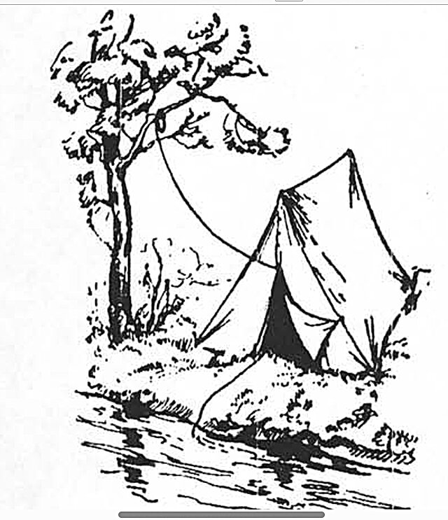 En bivouac dans le maquis, le poste AM de survie peut avoir son antenne dressée dans un arbre et sa mise à la terre plongée dans une rivière: