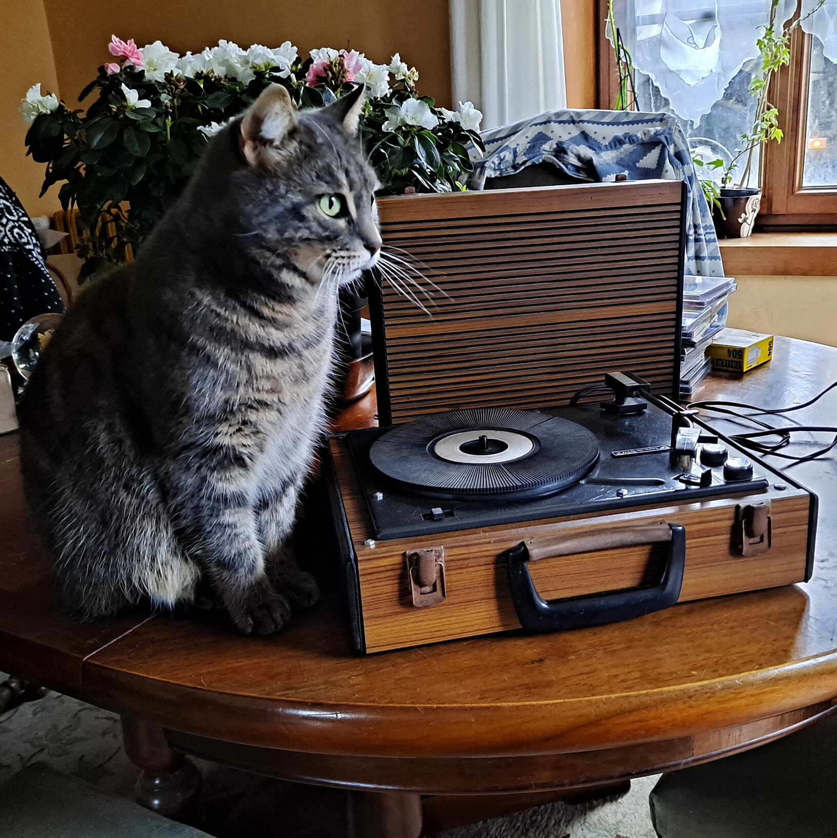 Je viens de finir la remise en état du petit électrophone LVDSM C290 que j’ai depuis que je suis ado. Il a un peu plus de 50 ans… Un demontage et un graissage complet ont été nécessaire ainsi qu’un nettoyage des contacts potentiomètres de volume et de tonalité. La mousse du couvercle avec le haut parleur était complètement désagrégée. J’ai fait une peinture granitée noire en remplacement. Si je trouve un beau tissu velours ou toilé noir, je regarnirai le fond du couvercle. Je devrais retrouver un changeur automatique de 45 tours grâce à Dominique Martel. Je suis très content d’avoir redonné vie à ce petit appareil qui va me permettre de réécouter mes vieux disques d’époque sur un appareil d’époque.