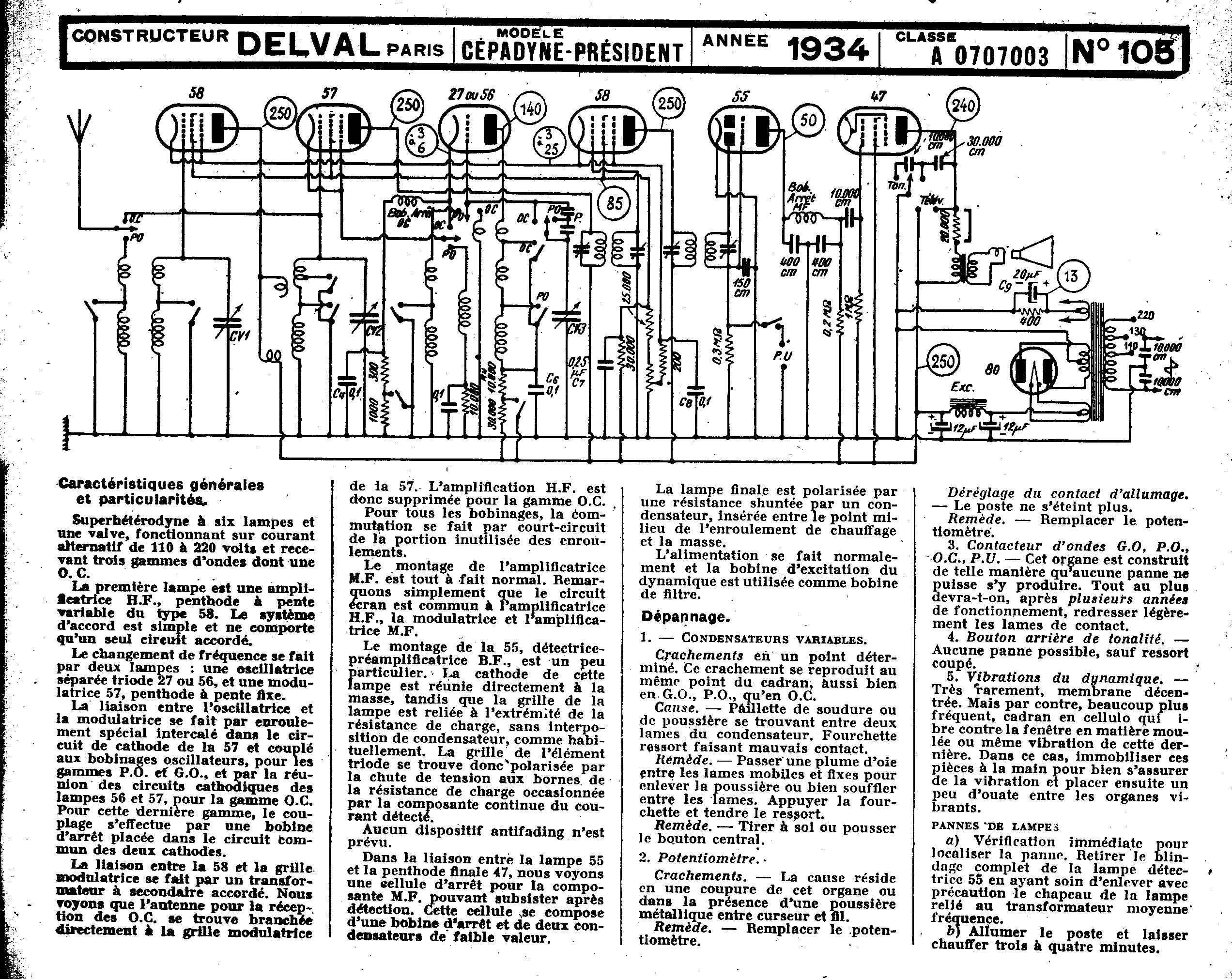 Je n’y connais pas grand chose mais pour une fois je peux affirmer que ce poste est un Cépadyne Delval avec lampes américaines chauffées en 2,5V. Le schéma est disponible.